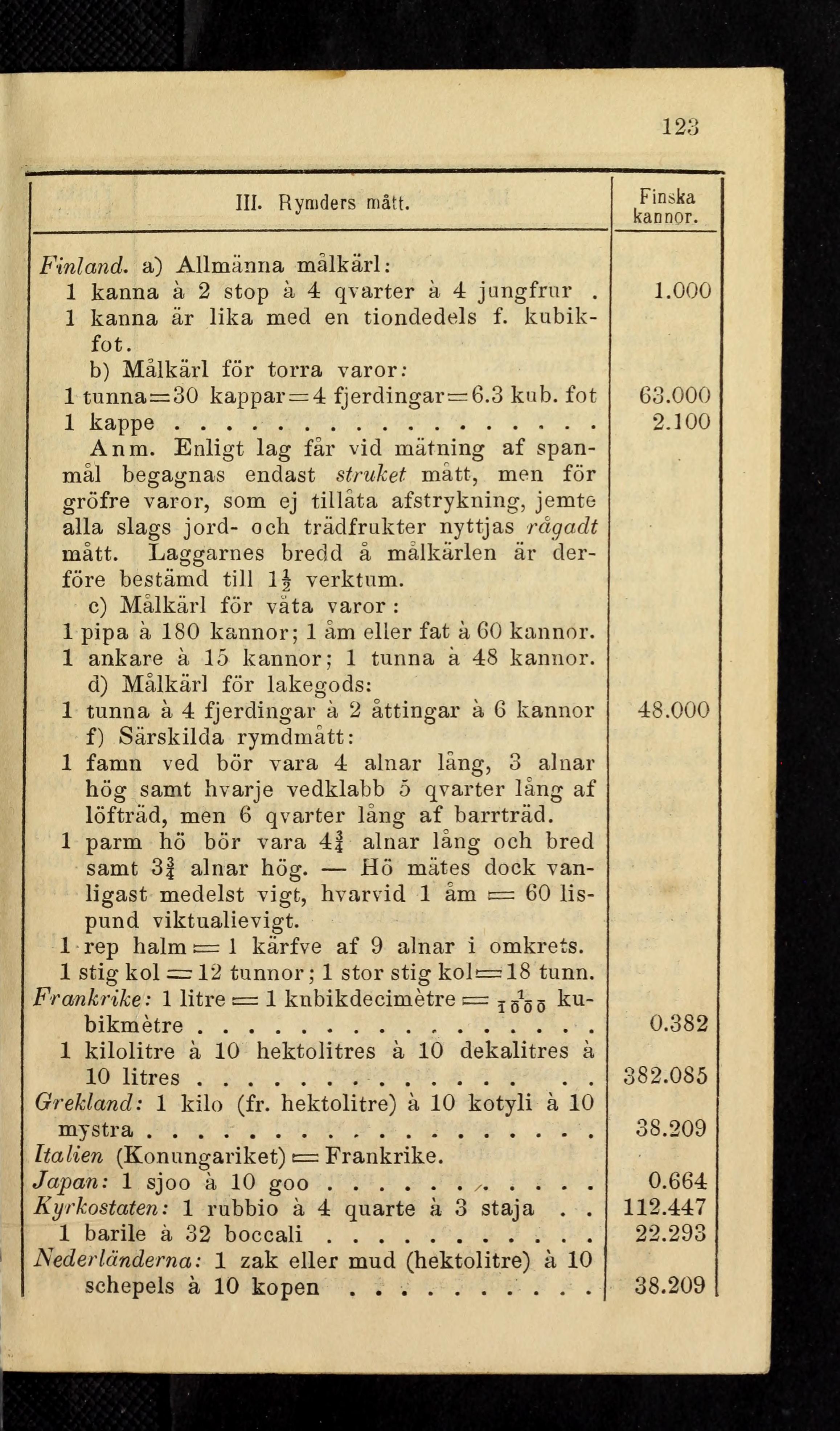 1 ankare ä 15 kannor; 1 tunna å 48 kannor.