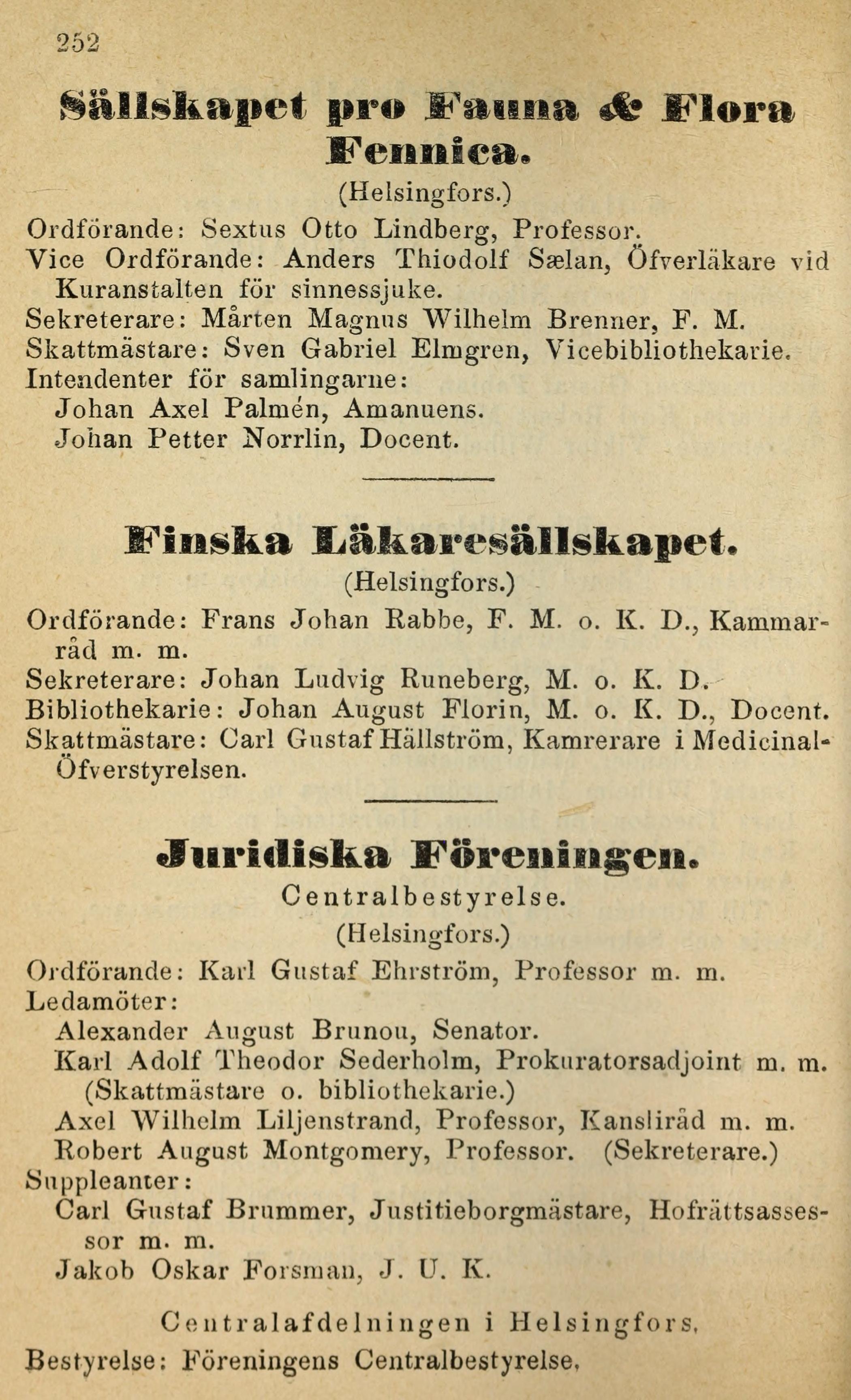 Ordförande: Sextus Otto Lindberg, Professor.
