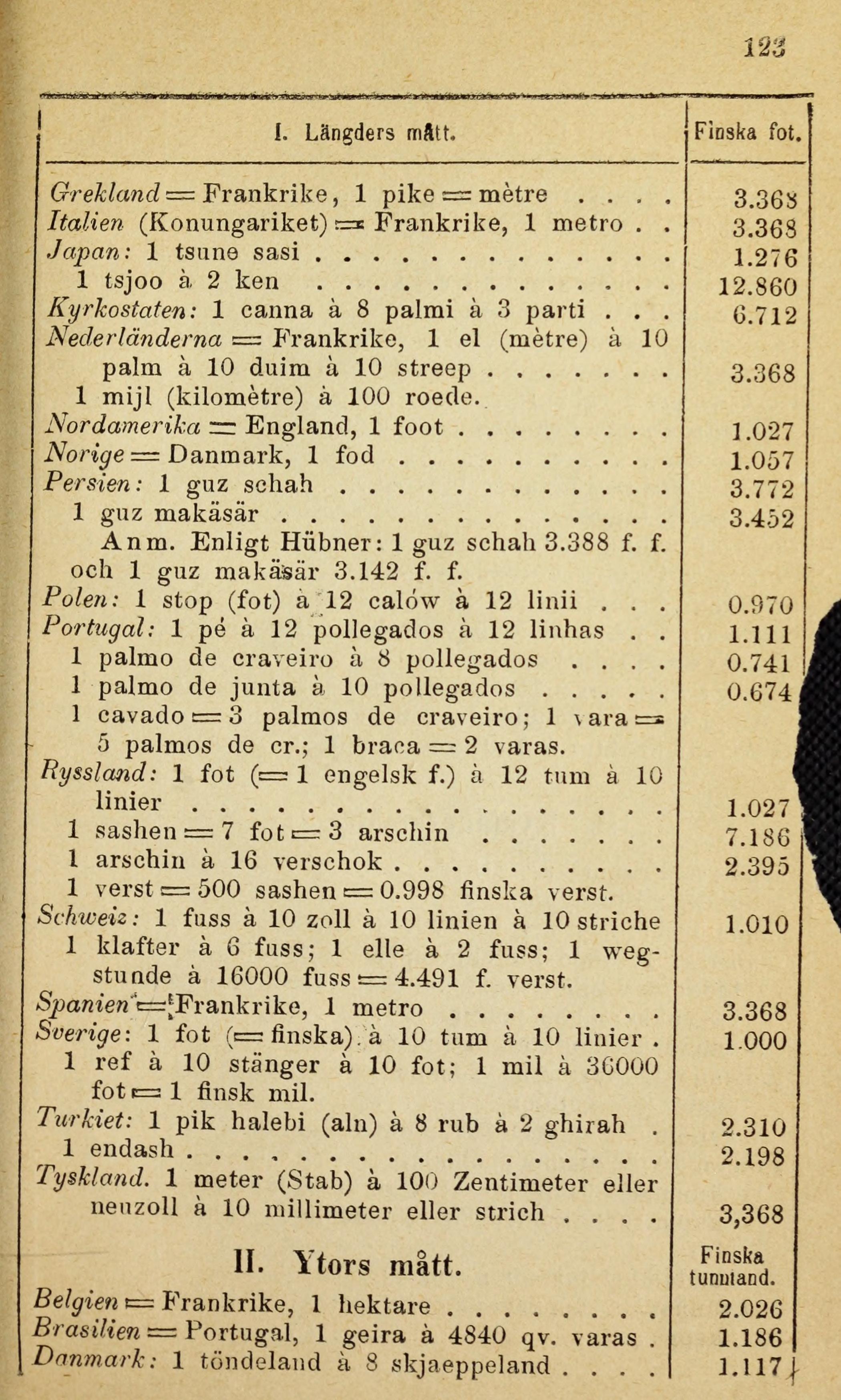 Sverige : 1 fot (e= finska), å 10 tum ä 10 linier.
