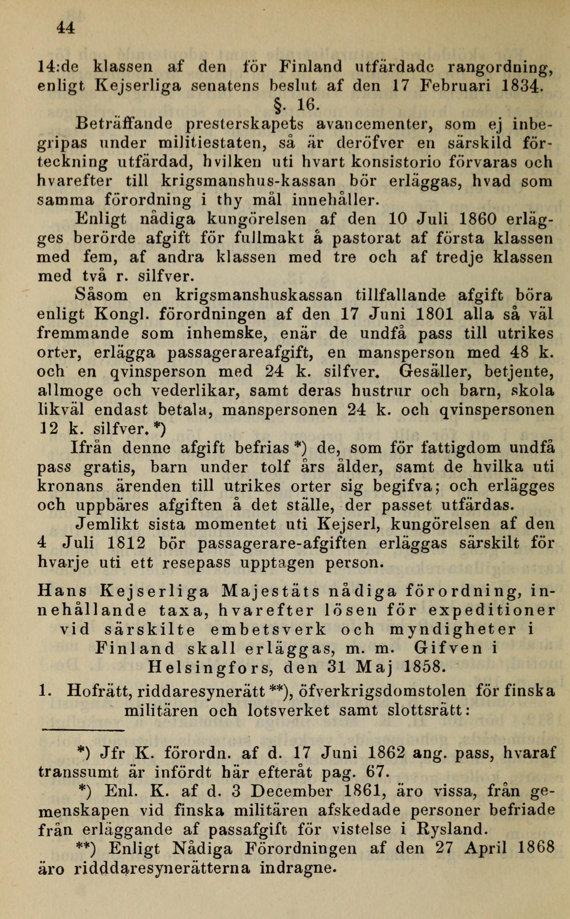 enligt Kejserliga senatens beslut af den 17 Februari 1834-