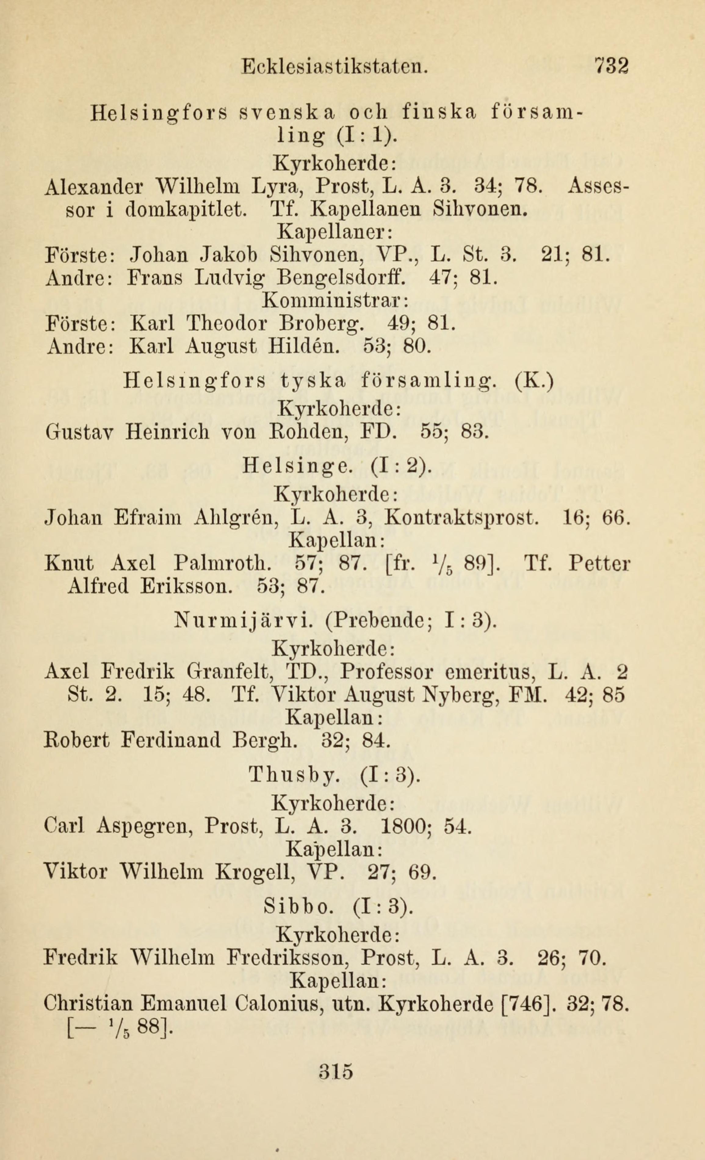 Förste: Johan Jakob Sihvonen, VP., L. St. 3. 21; 81.