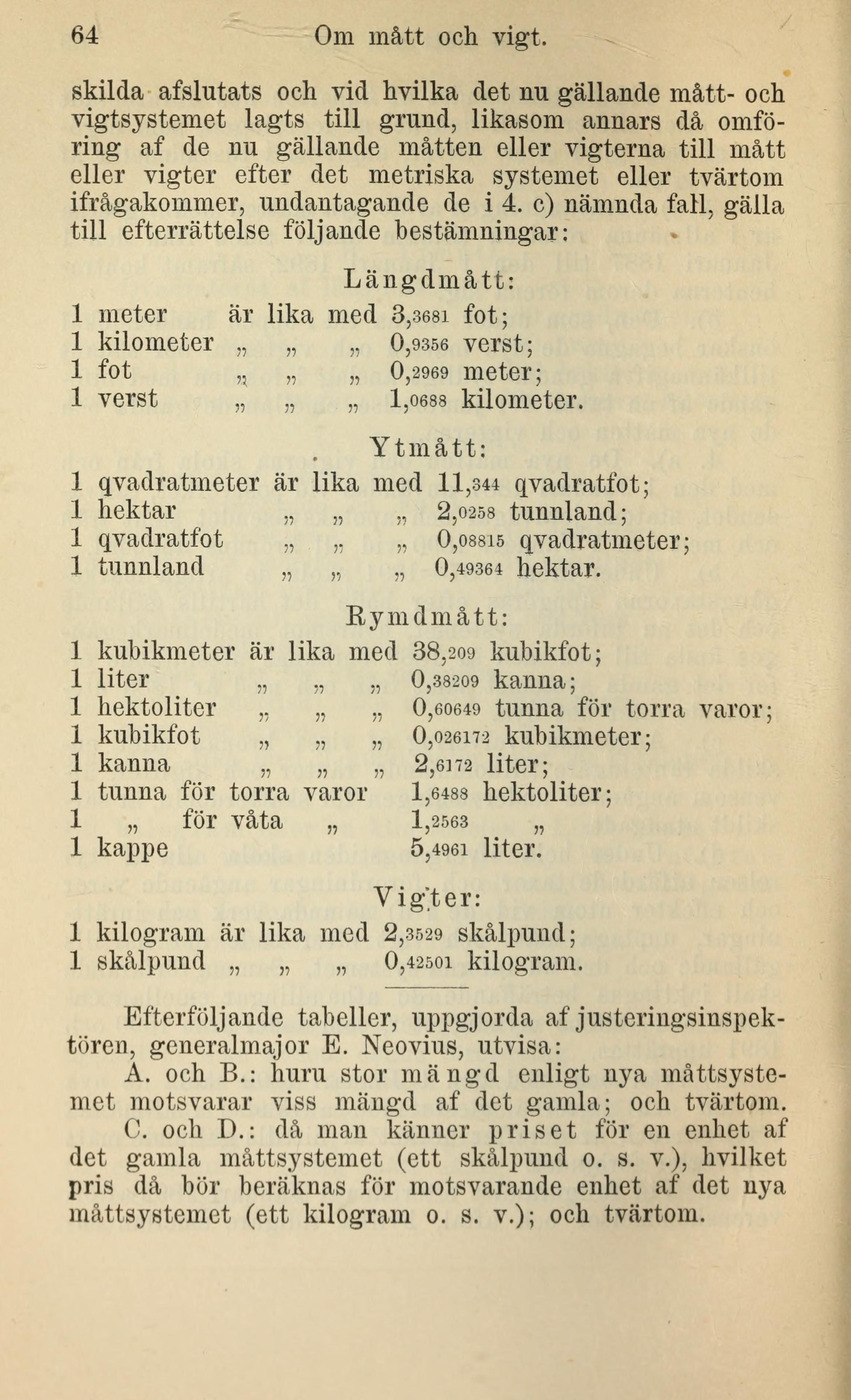 det gamla måttsystemet (ett skålpund 0 . s. v.), hvilket