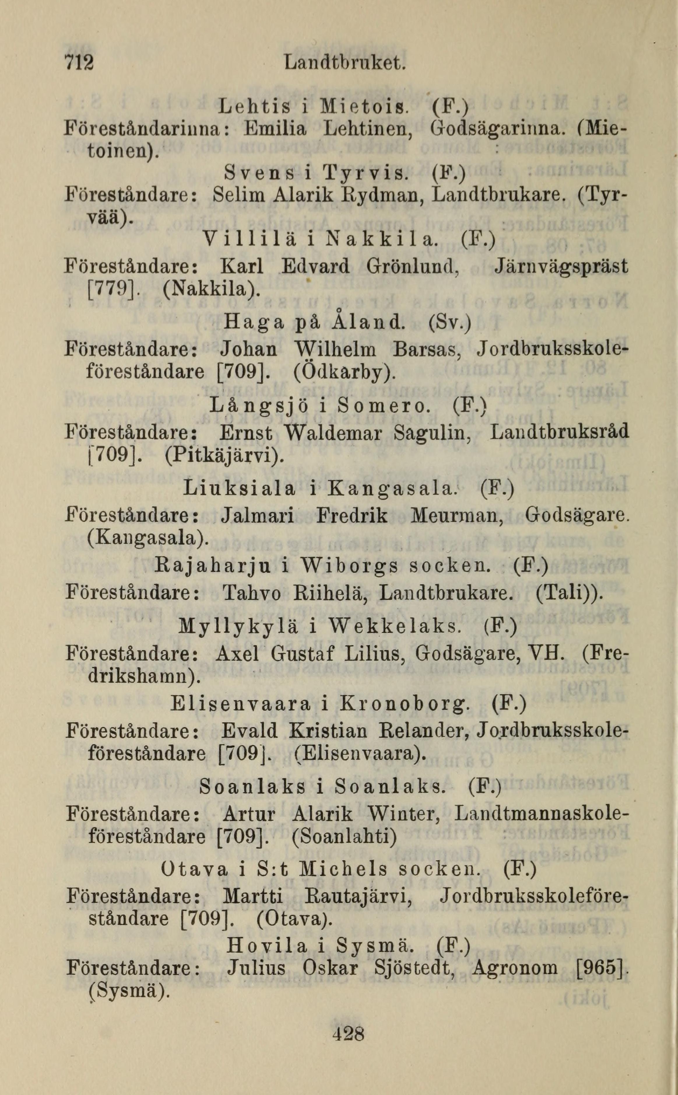 Föreståndare: Ernst Waldemar Sagulin, Landtbruksråd