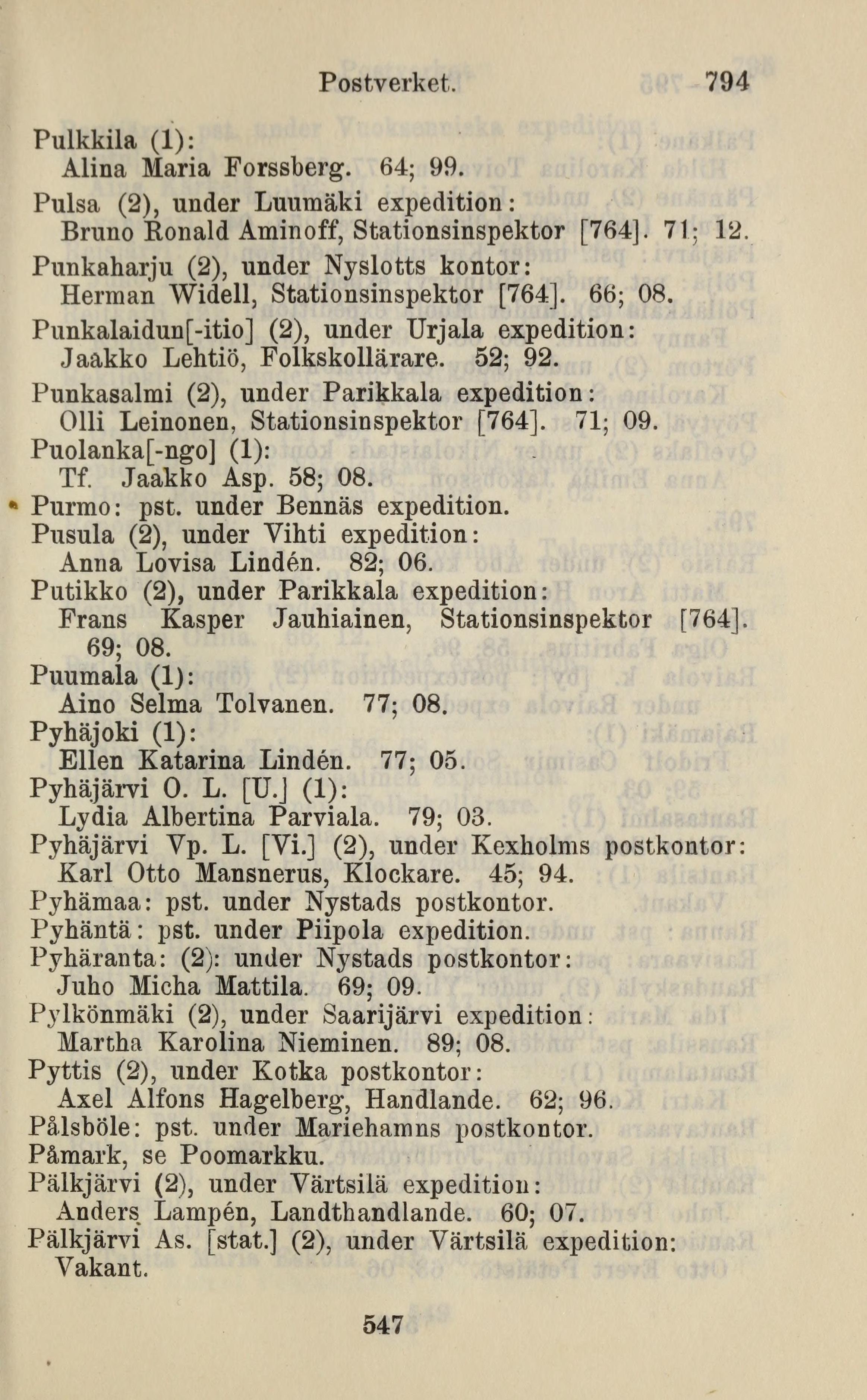 Pyhäjärvi Vp. L. [Vi.] (2), under Kexholms postkontor: