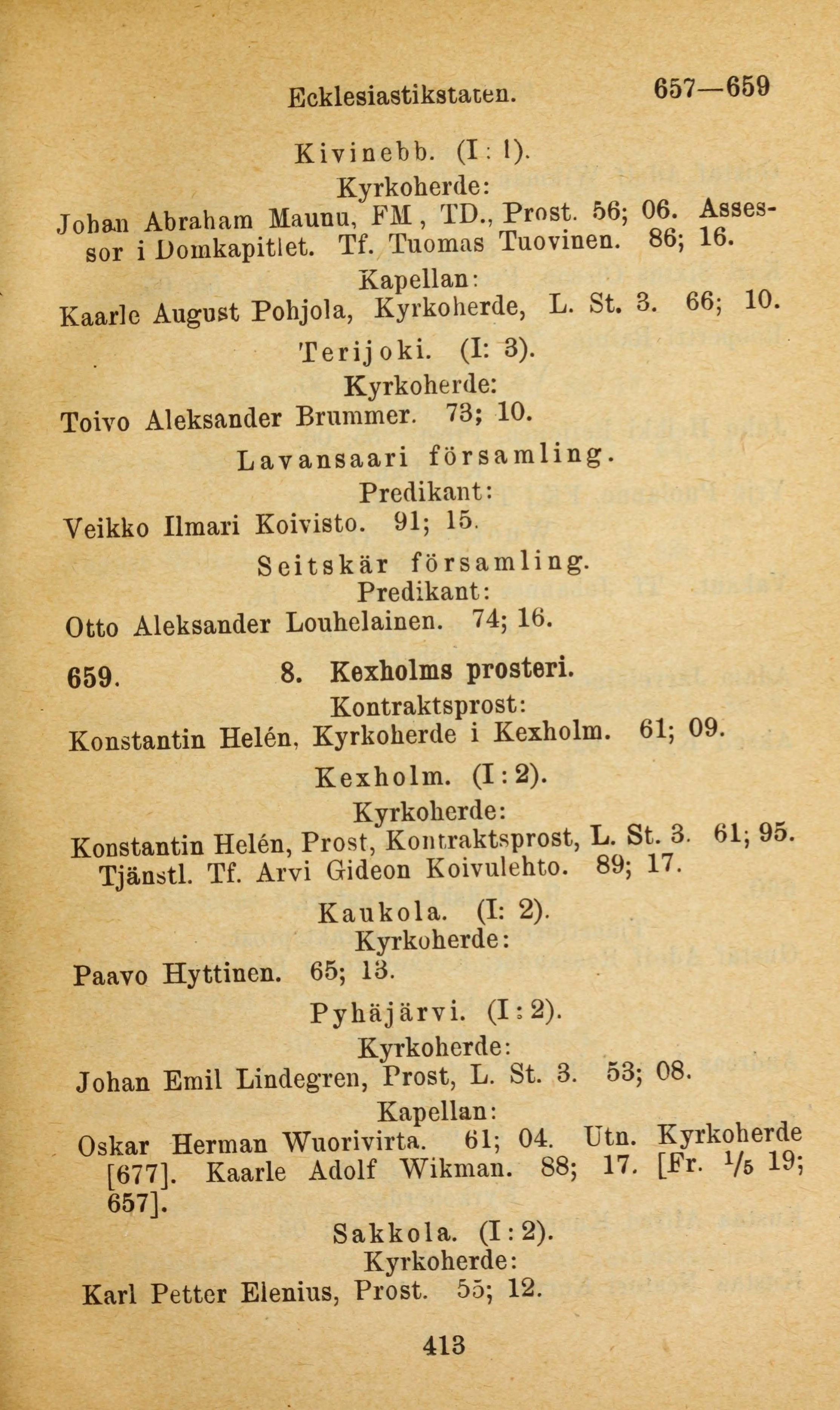 Konstantin Helén, Kyrkoherde i Kexholm. 61; 09.