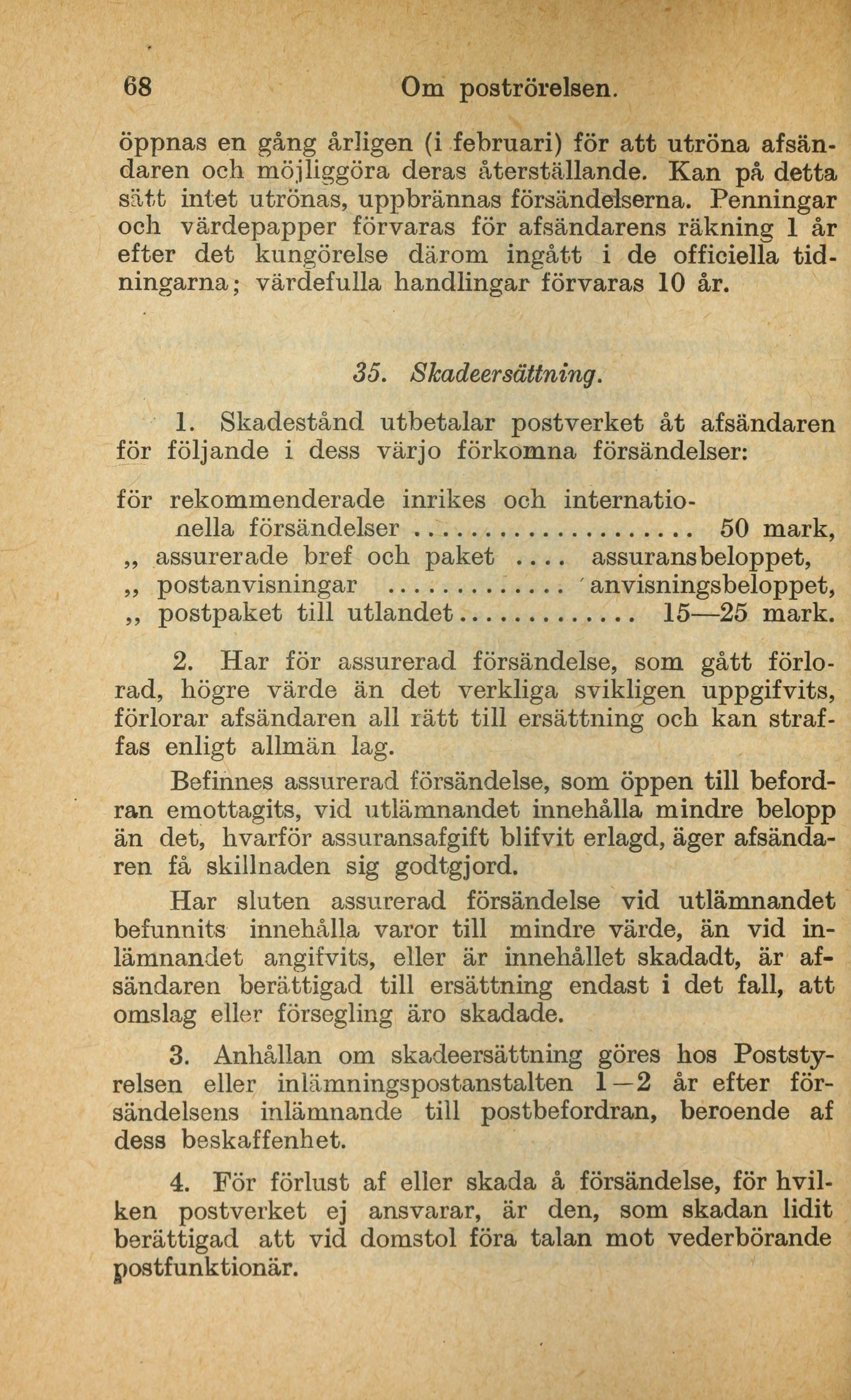 lämnandet angifvits, eller är innehållet skadadt, är af-