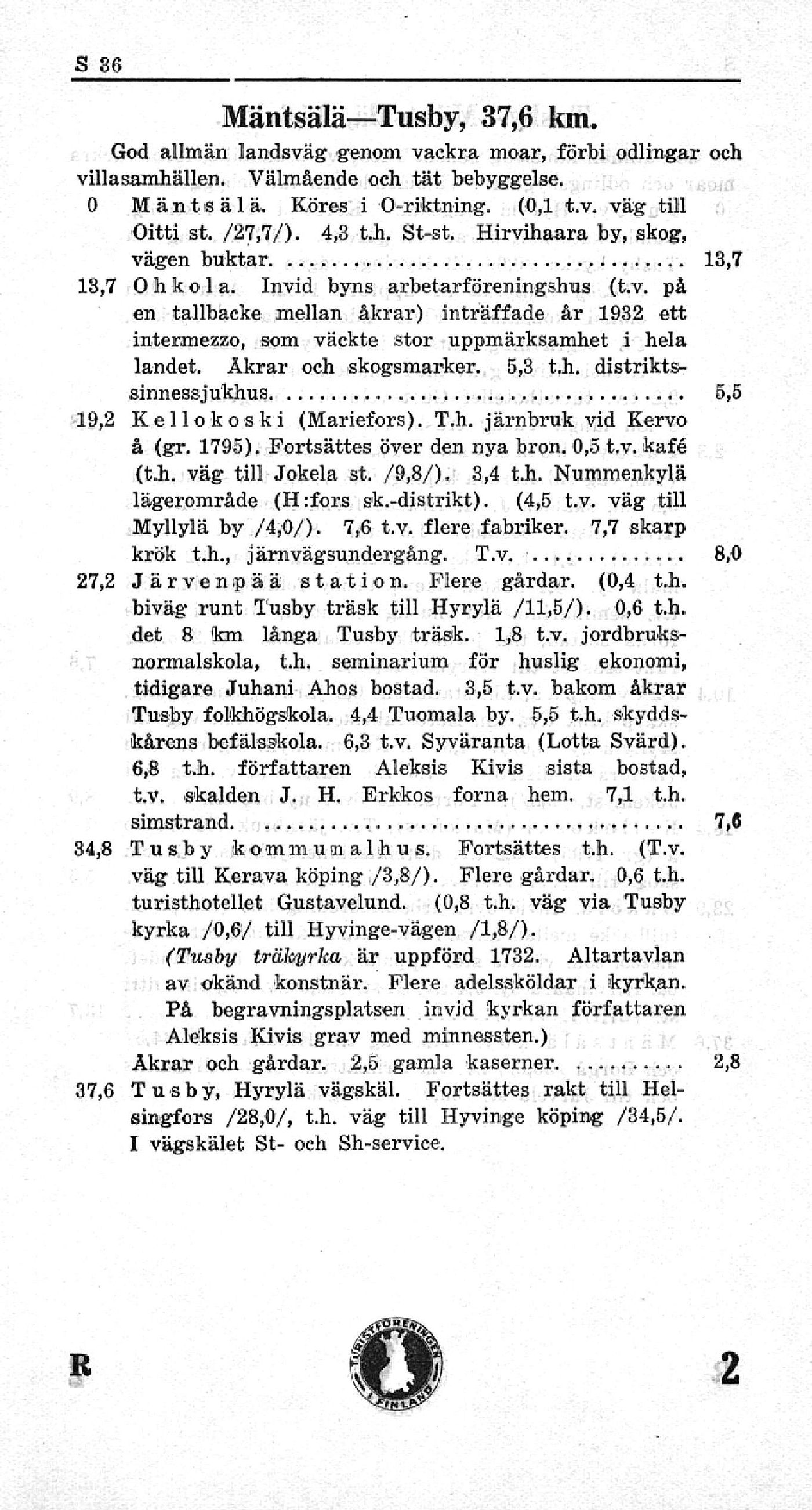 biväg runt Tusby träsk till Hyrylä /11,5/). 0,6 t.h.