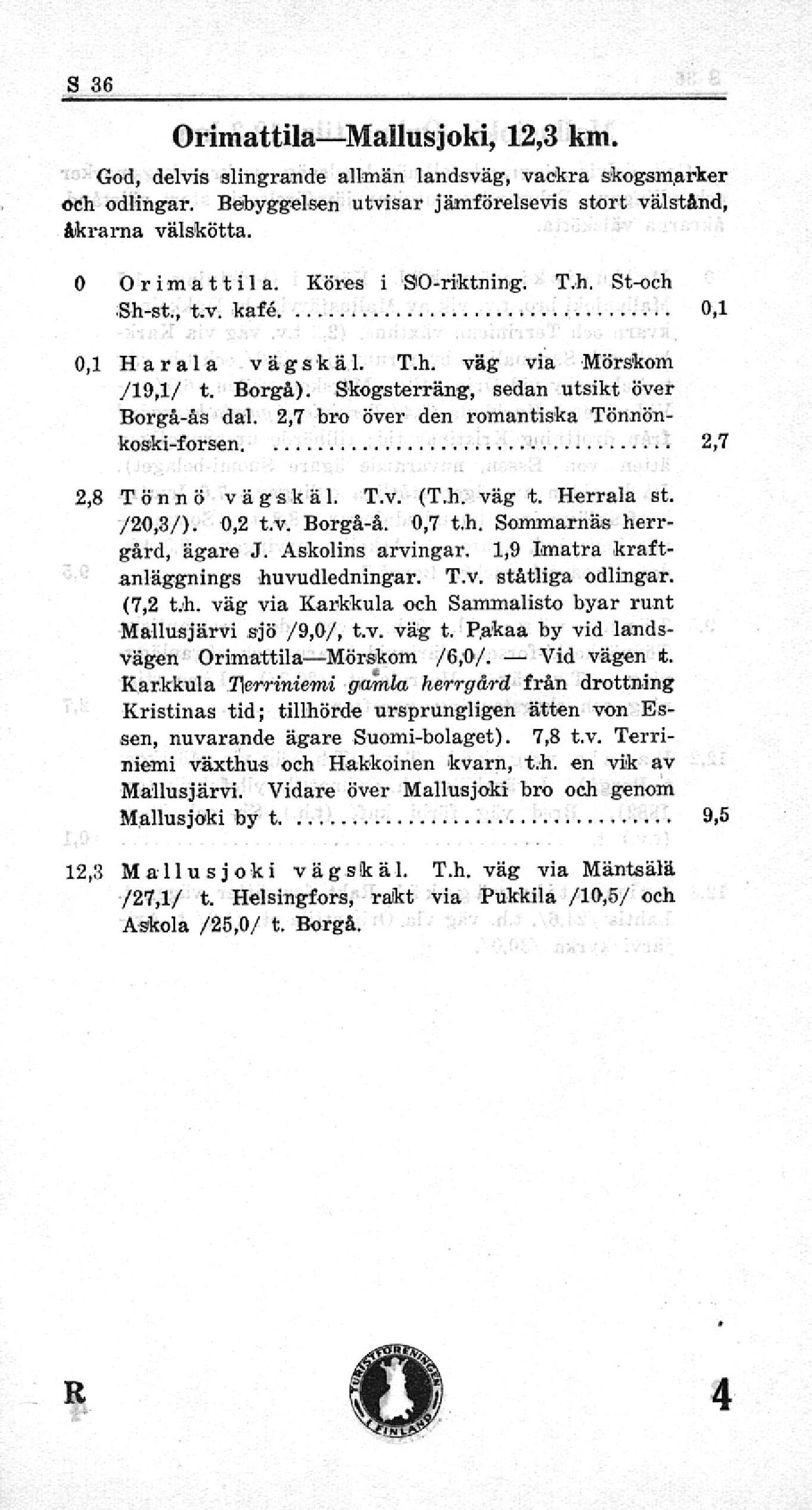 12,3 Mallusjoki vägskäl. T.h. väg via Mäntsälä