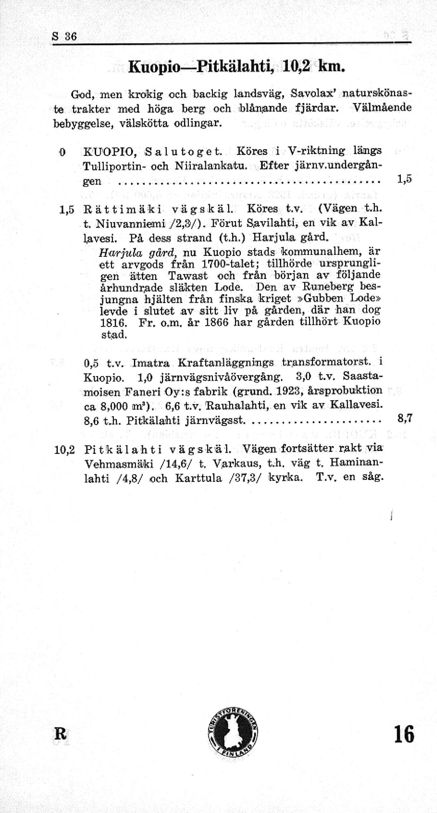 8,6 t.h. Pitkälahti järnvägs st................. 8,7