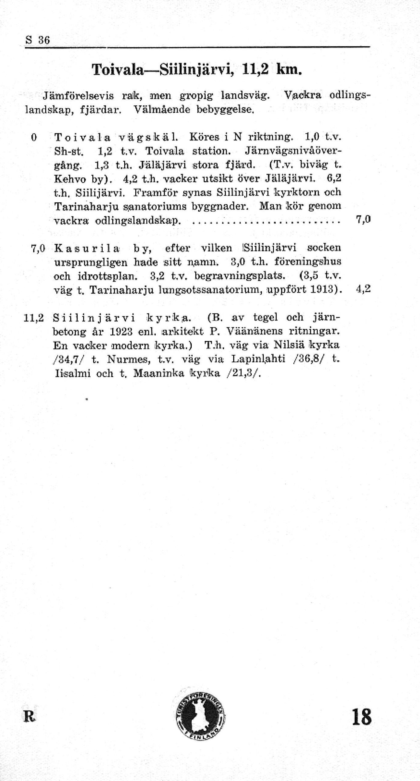 0 Toivala vägskäl. Köres i N riktning. 1,0 t,v.