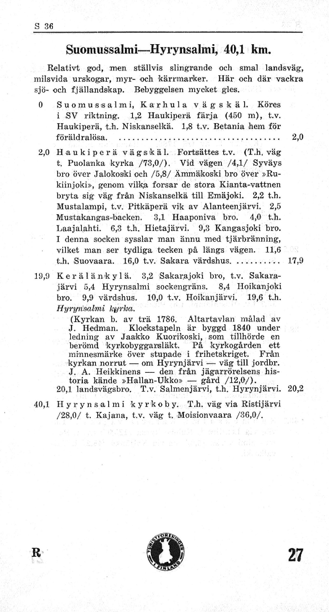 40,1 Hyrynsalmi k y r k o b y. T.h. väg via Ristijärvi