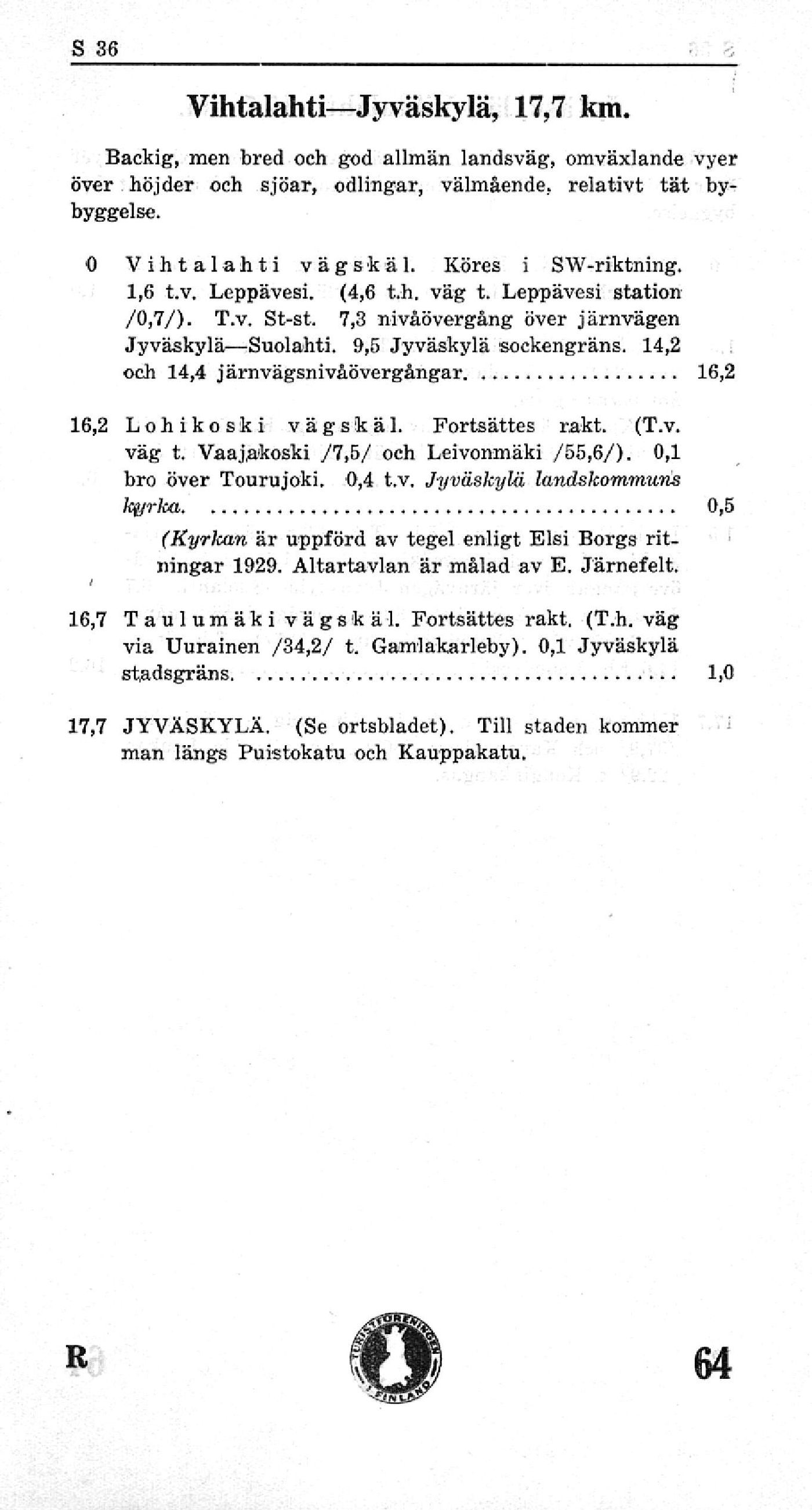 väg t. Vaajakoski /7,5/ och Leivonmäki /55,6/). 0,1