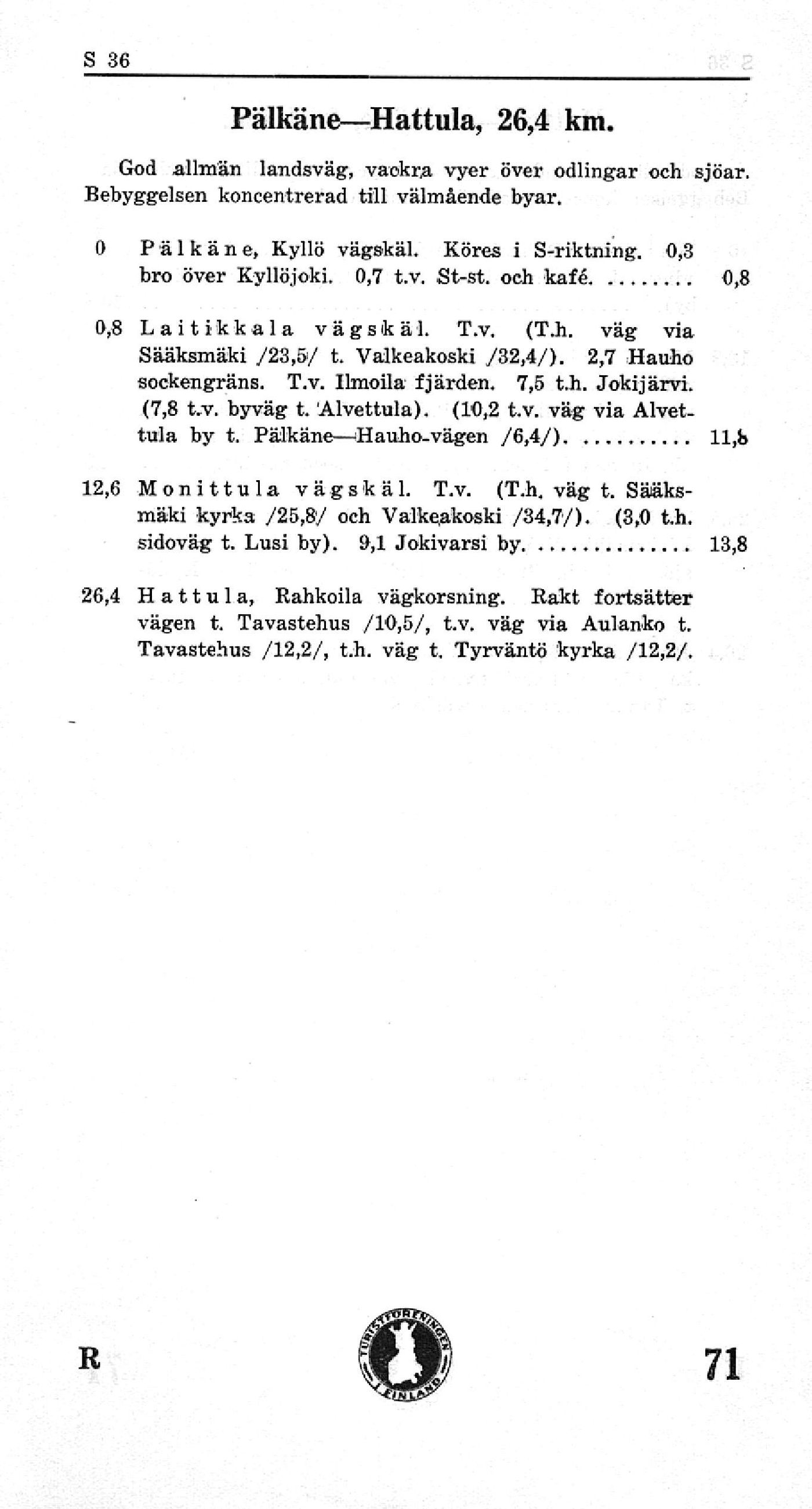 0 Pälkäne, Kyllö vägskäl. Köres i S-riktning. 0,3