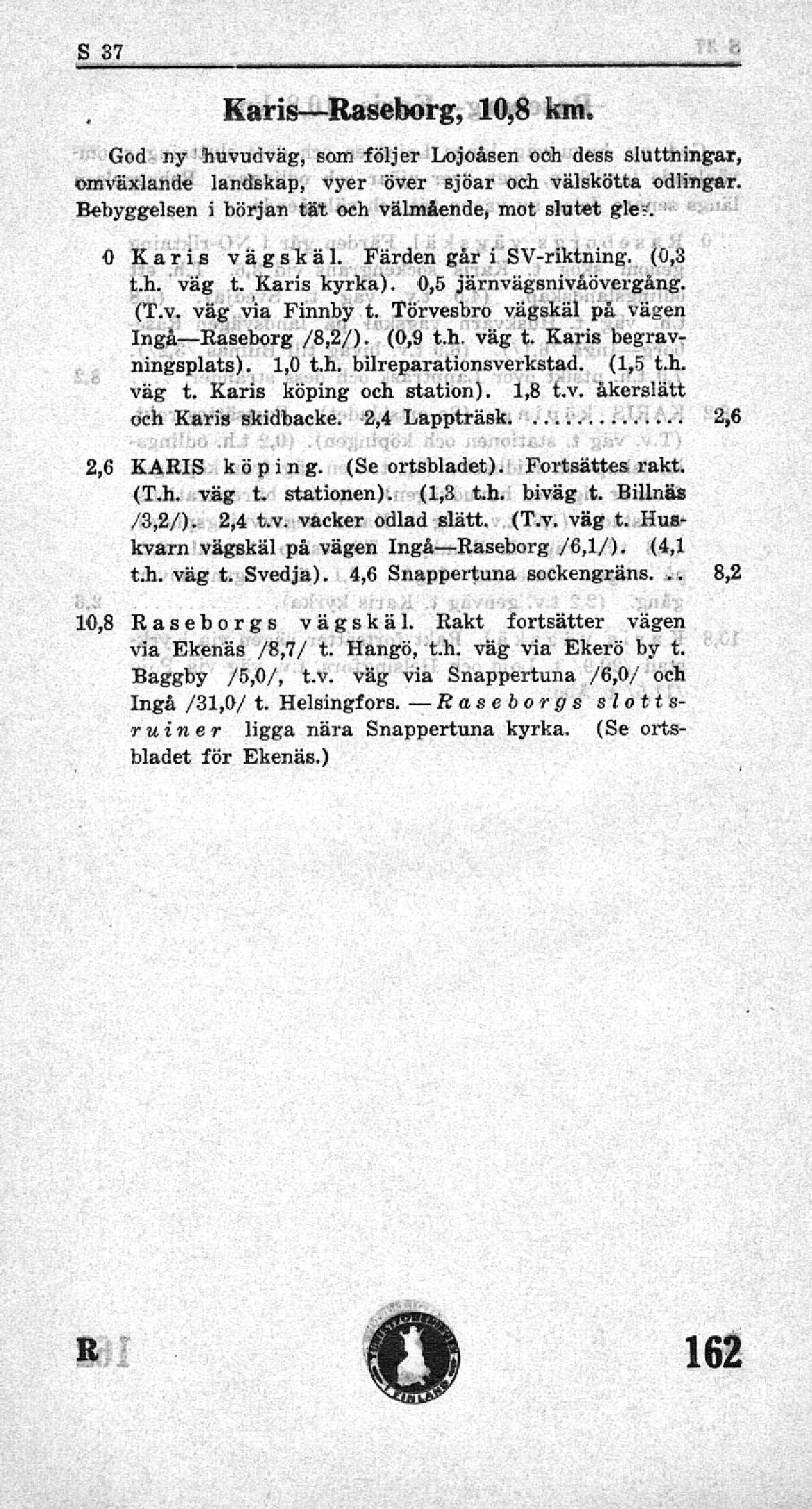Ingå—Raseborg /8,2/). {0,9 t.h. väg t. Karis