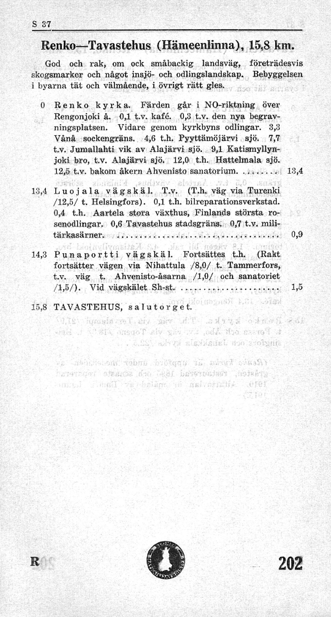 Renko—Tavastehus (Hämeenlinna), 15,8 kni.