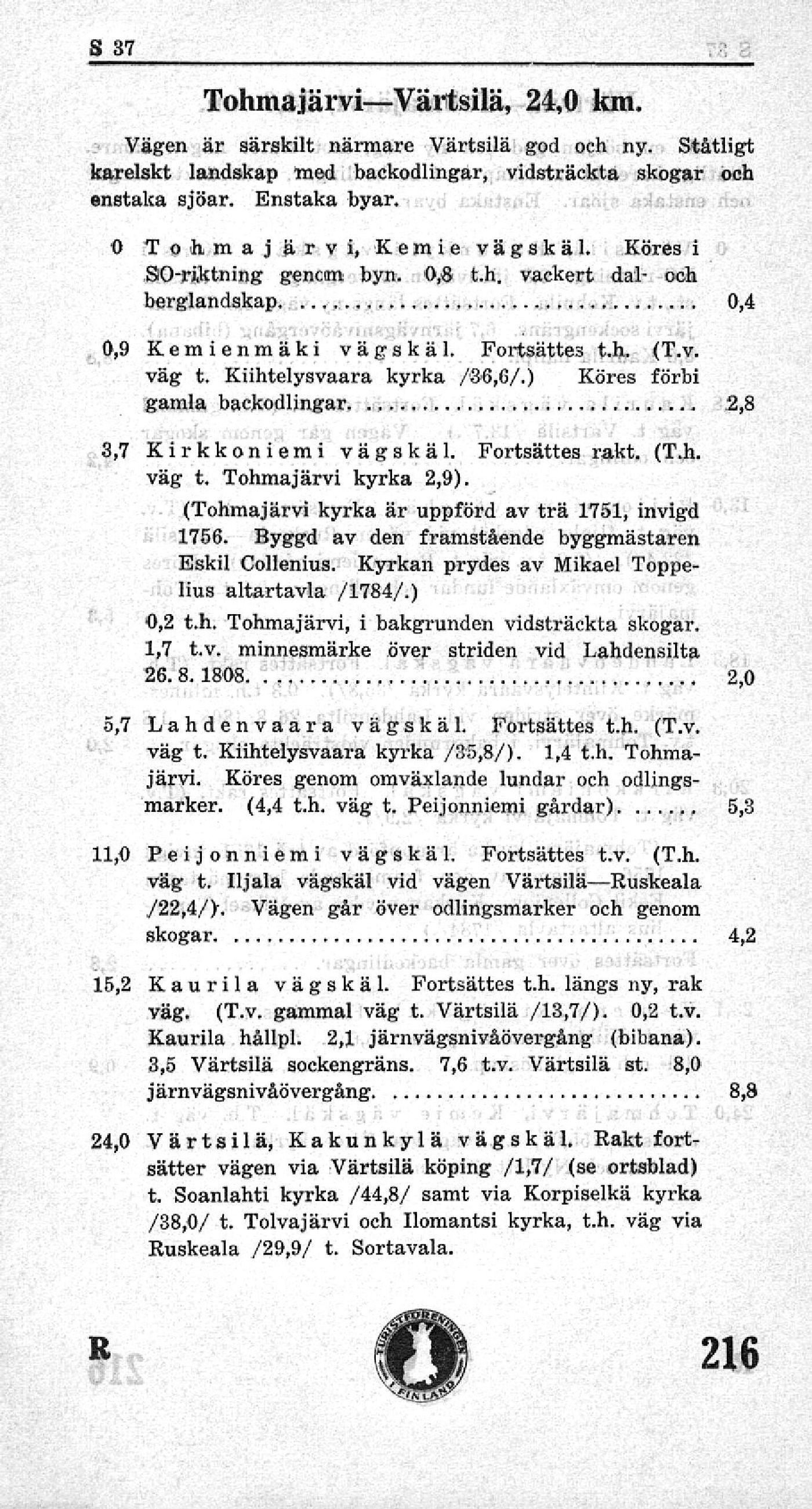 väg t, Tohmajärvi kyrka 2,9).