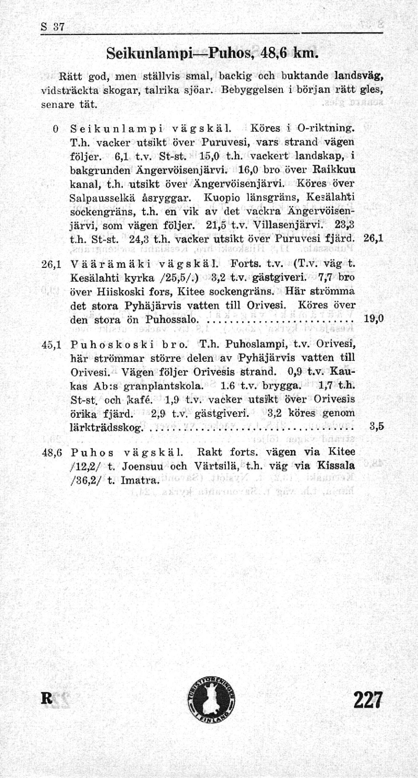 Kesälahti kyrka /25,5/.) 3,2 t.v. gästgiveri. 7,7 bro