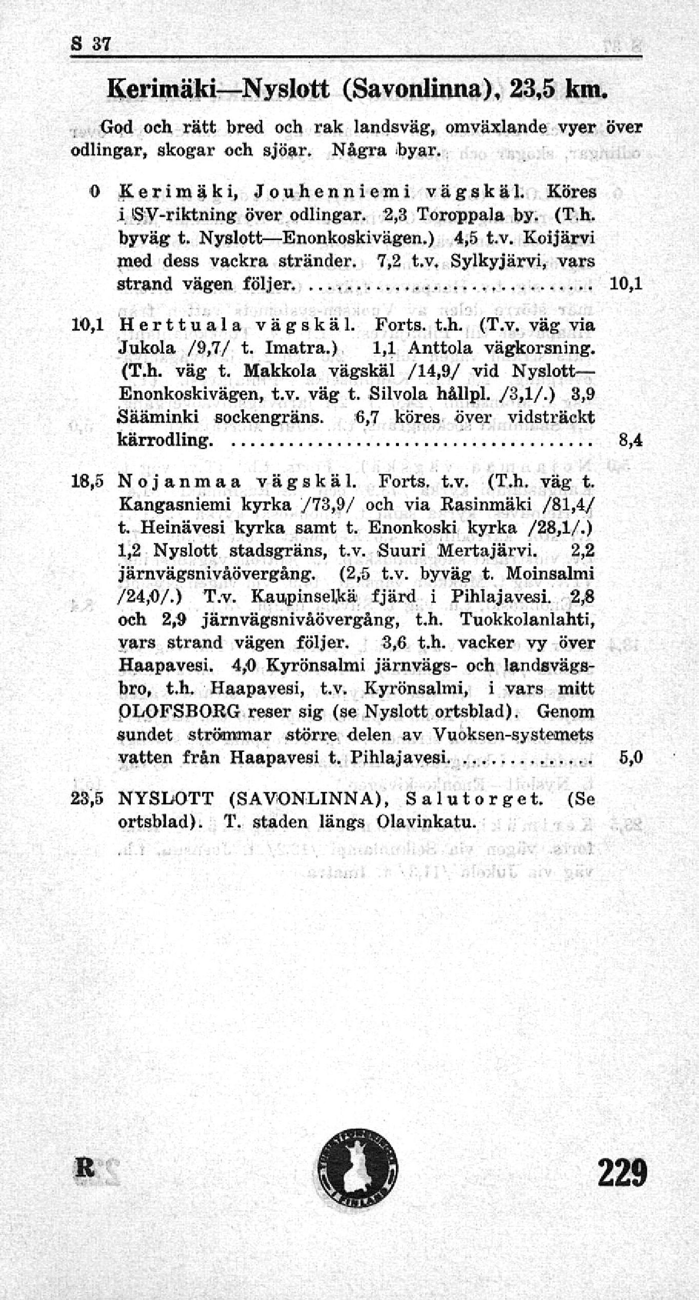1,2 Nyslott stadsgräns, t.v. Suuri Mertajärvi. 2,2