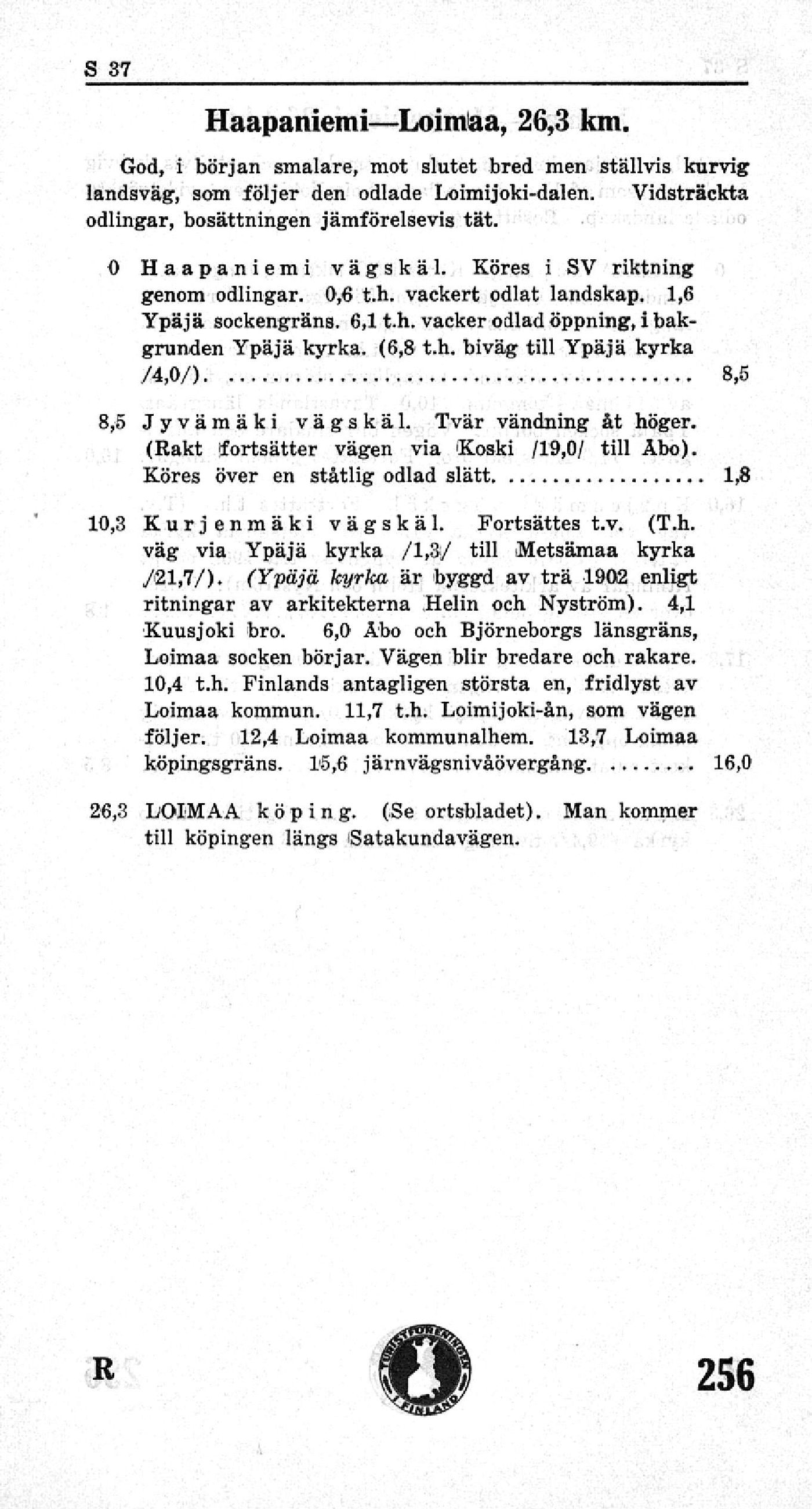 landsväg, som följer den odlade Loimijoki-dalen. Vidsträckta