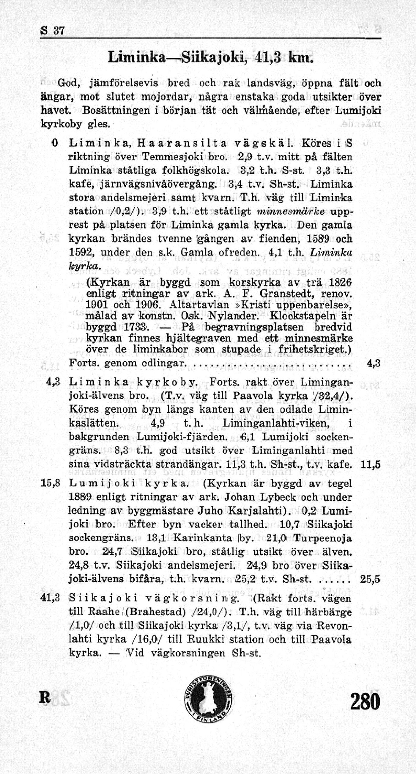 /1,07 och till [Siikajoki kyrka /3,1/, t.v. väg via