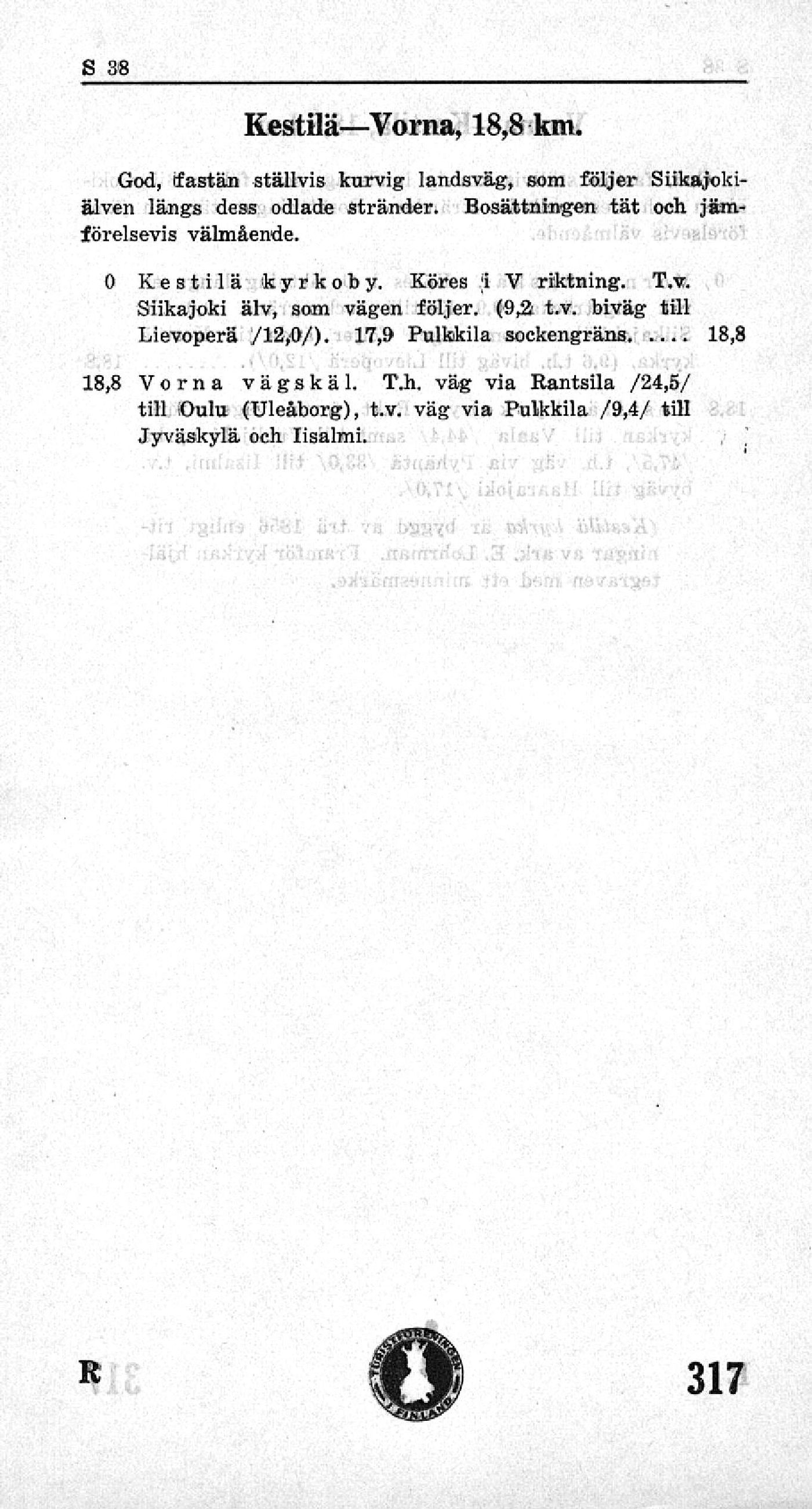 18,8 Vorna vägskäl. T.h, väg via Rantsila /24,5/