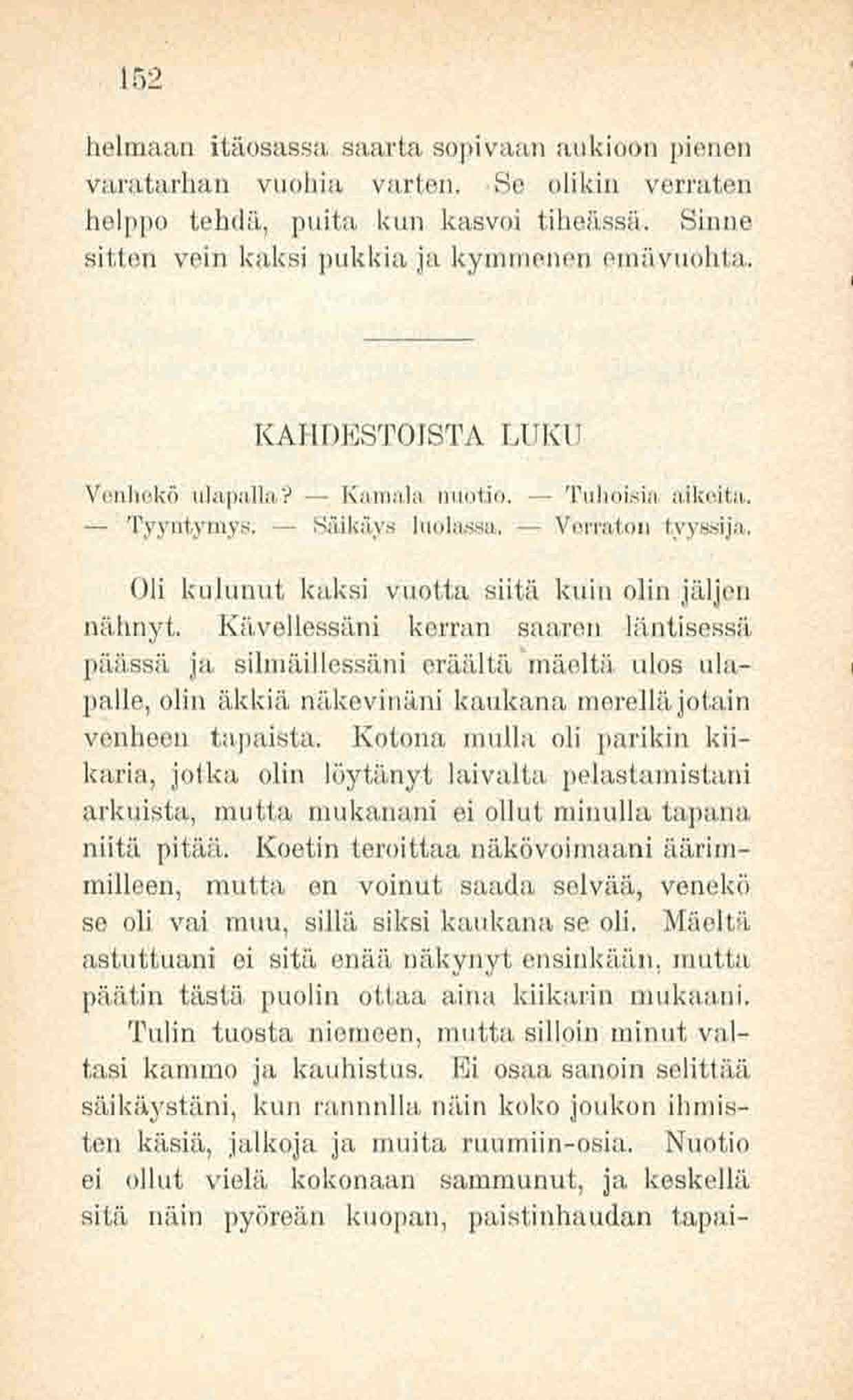 Tyyntymys, — Säikäys luolassa, — Verraton tvyssija,