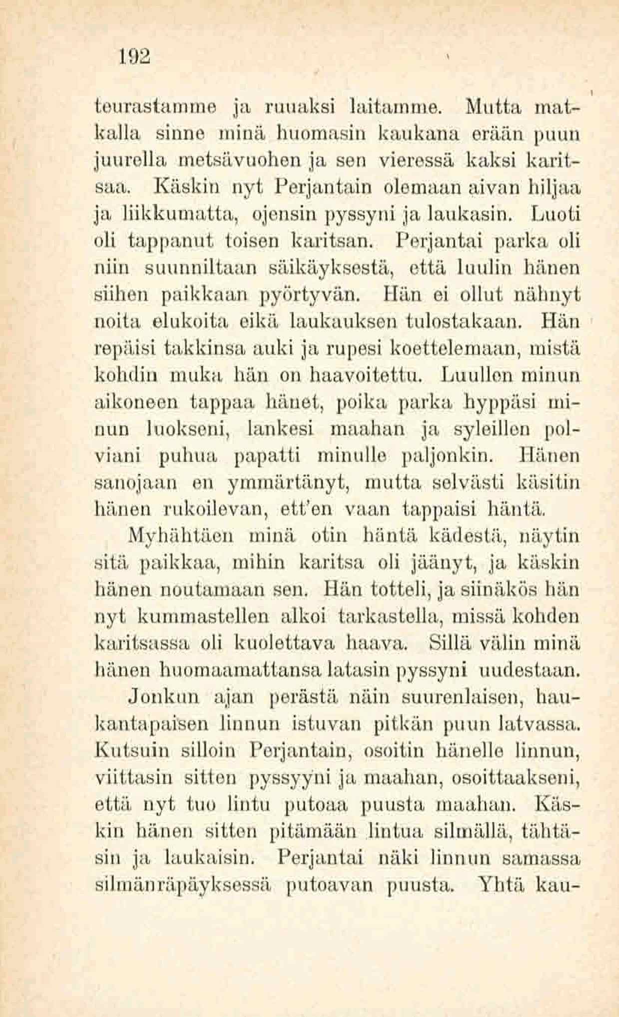 Kutsuin silloin Perjantain, osoitin hänelle linnun,