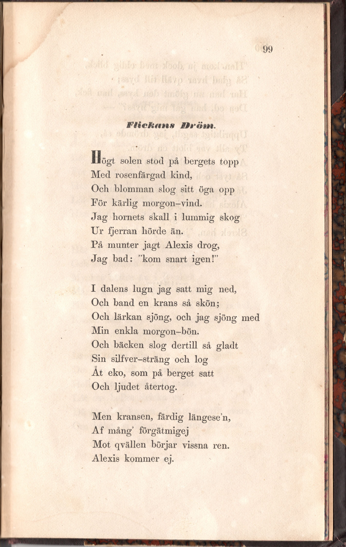 Högt solen stod på bergets topp I dalens lugn jag satt mig ned, Men kransen, färdig längese’n, |