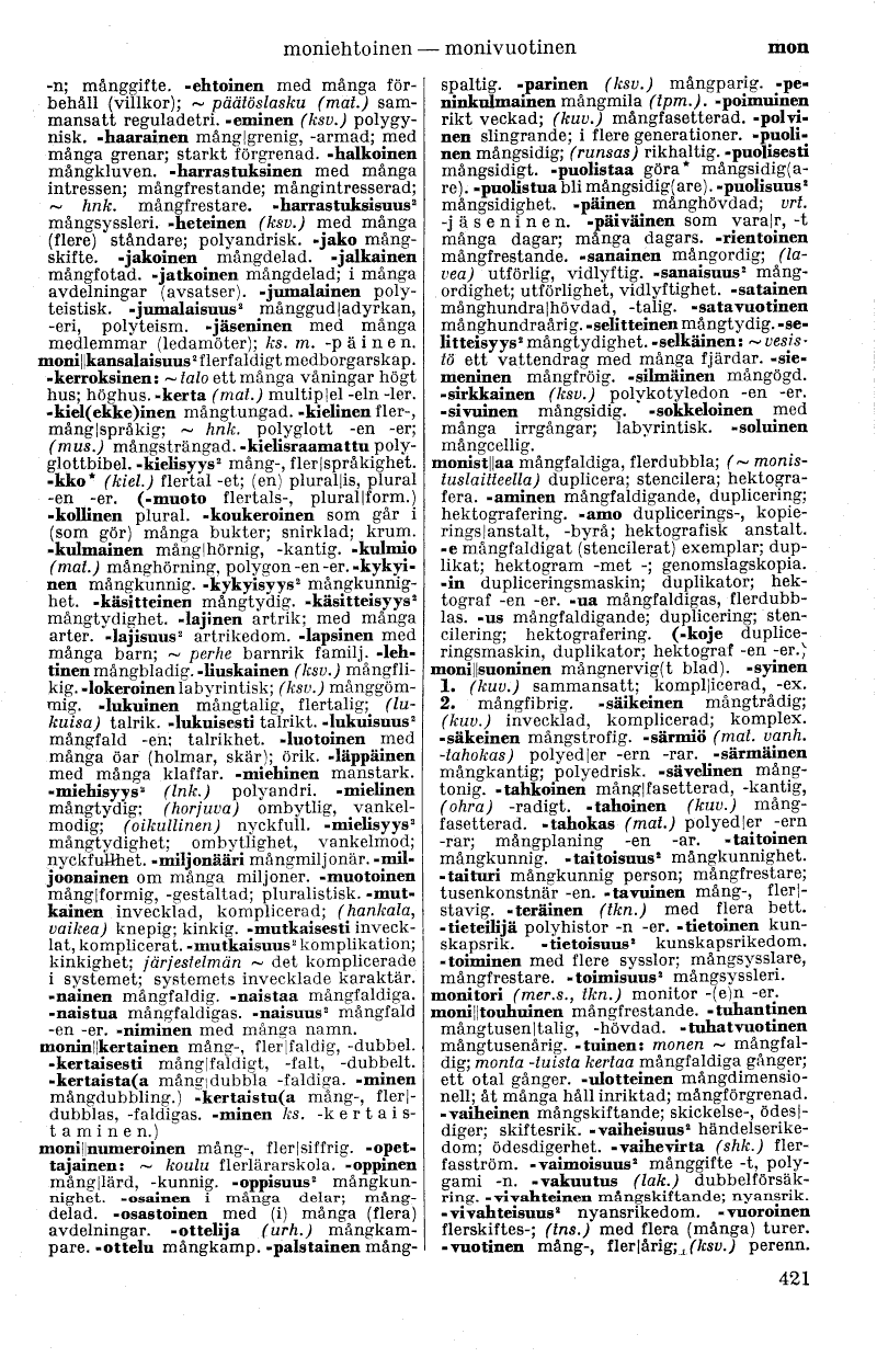 monin I !ker täinen mång-, fler i f aldi g, -dubbel,
