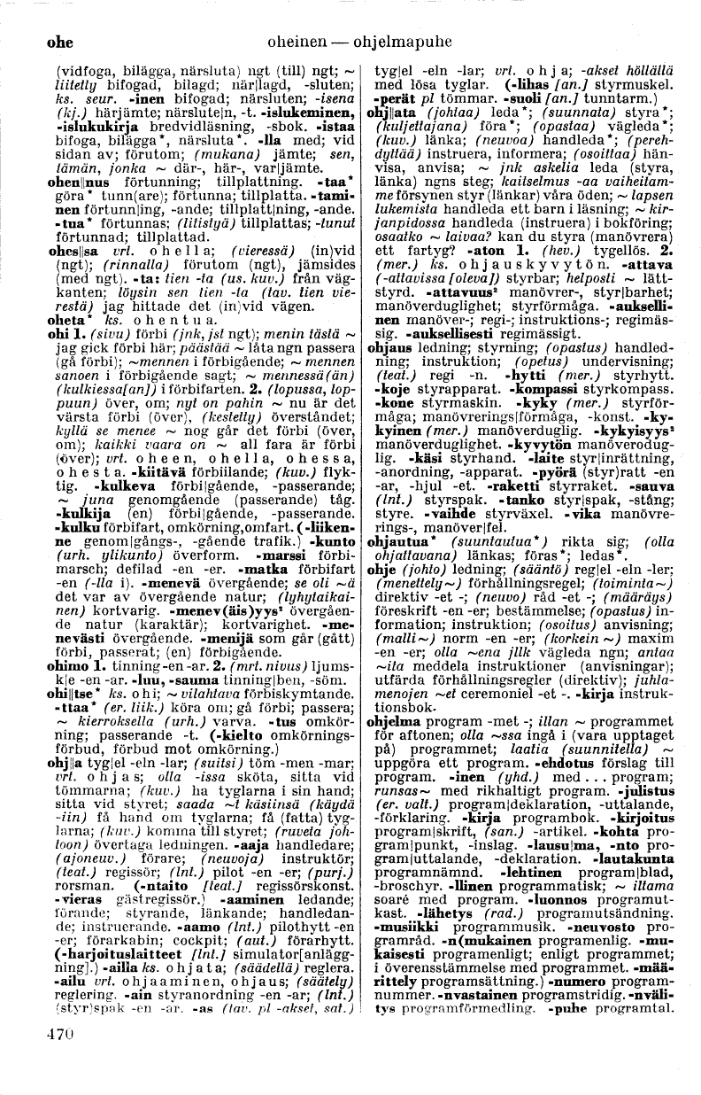 ohi 1. (sivu) förbi (jnk, jst ngt); menin tästä —