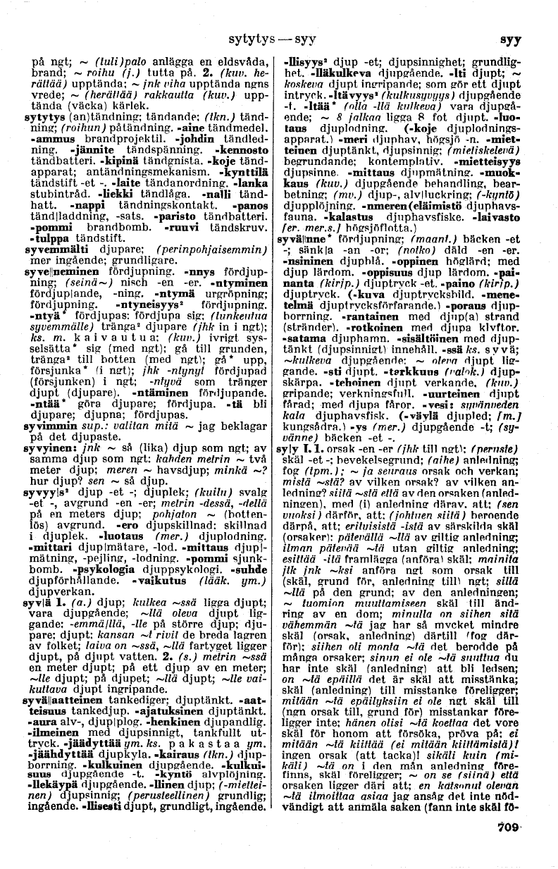 syv|ä 1. (a.) djup; kulkea —ssä ligga djupt;