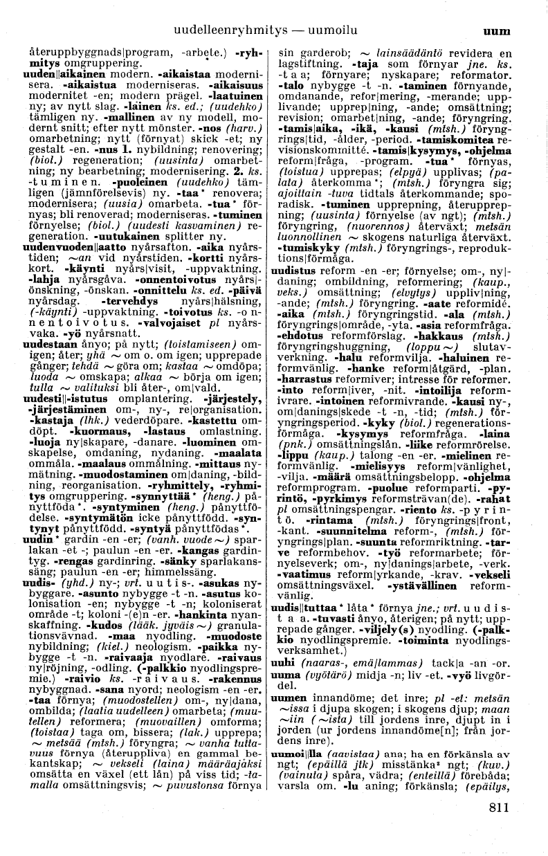 uudis 11 tu t taa * låta * förnya jne.; vrt.