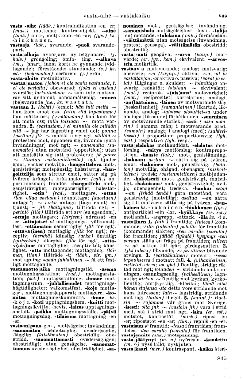 motbjudande. -hakoisesti mot-, gen|strävigt,