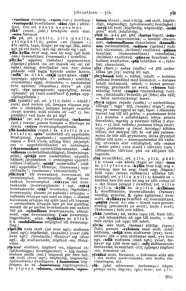 -vuotinen överårig, -vuoto (vsr.) överlopp,