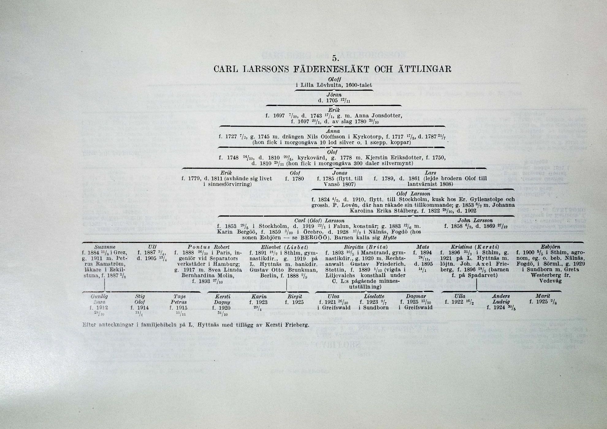 CARL LARSSONS FÄDERNESLÄKT OCH ÄTTLINGAR