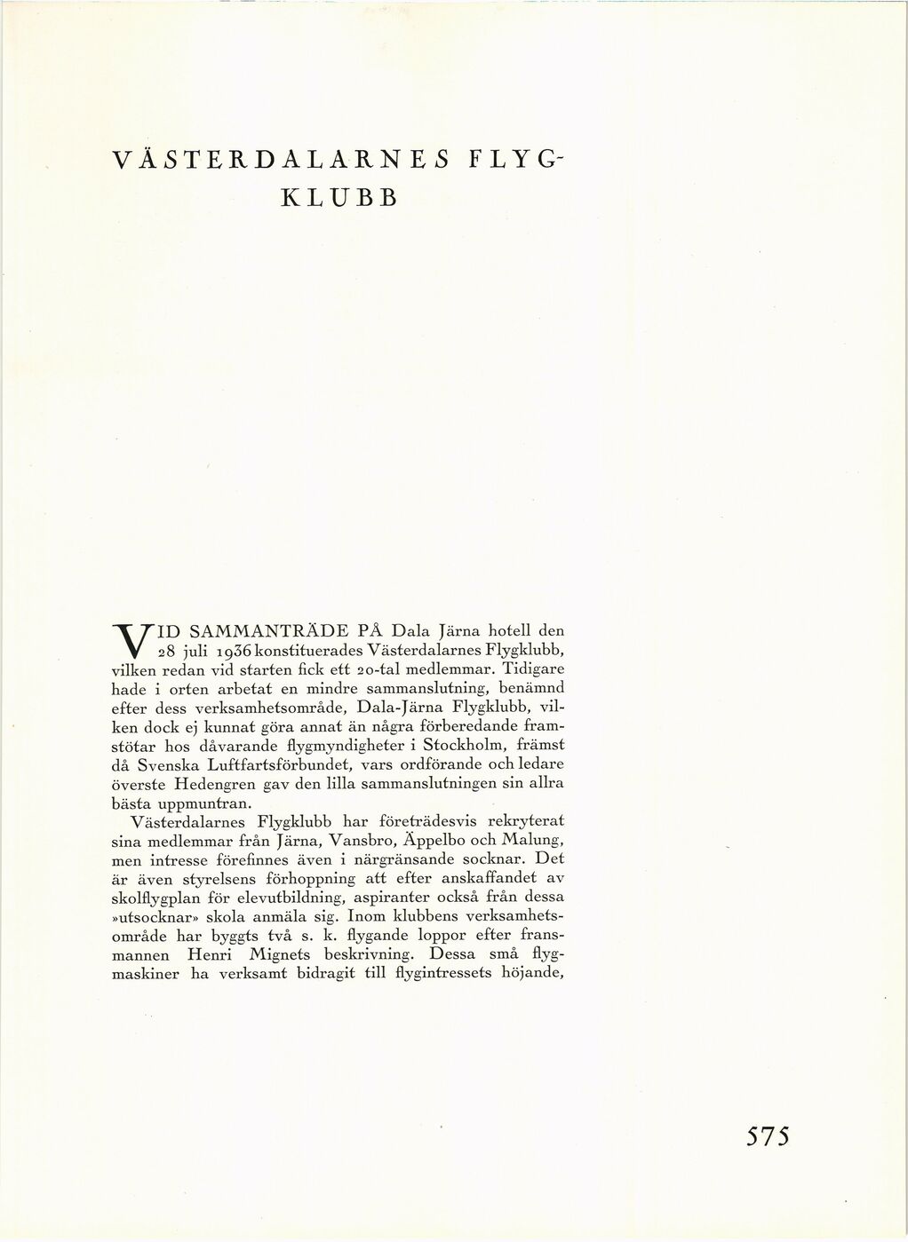 28 juli 1936 konstituerades Västerdalarnes Flygklubb,