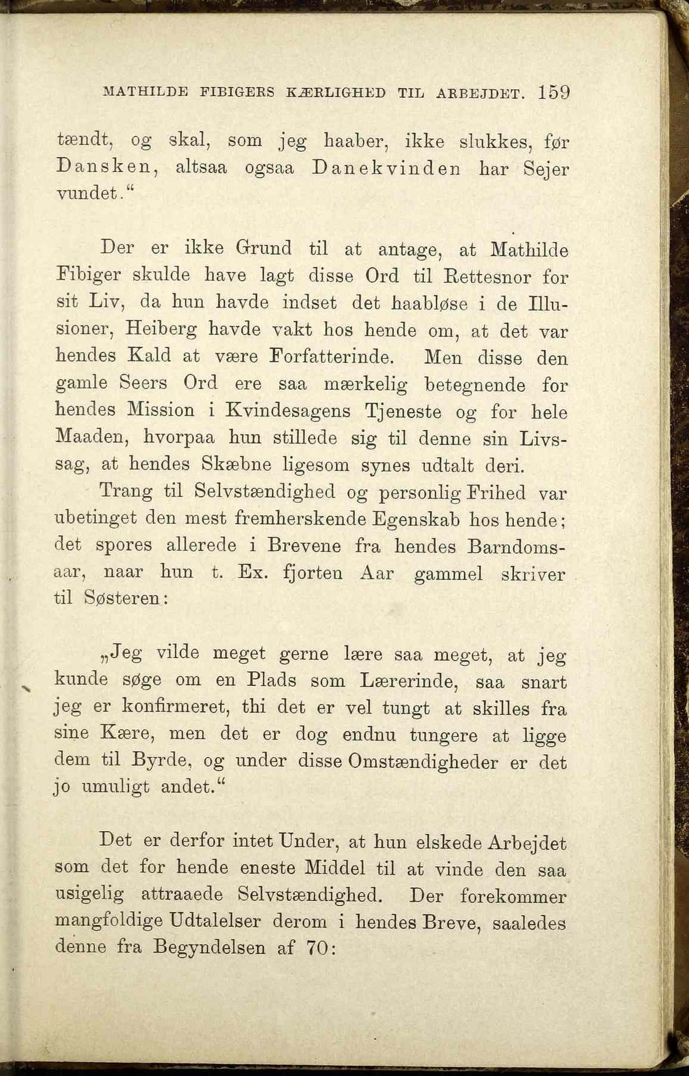 MATHILDE FIBIGERS KÆRLIGHED TIL ARBEJDET. 159