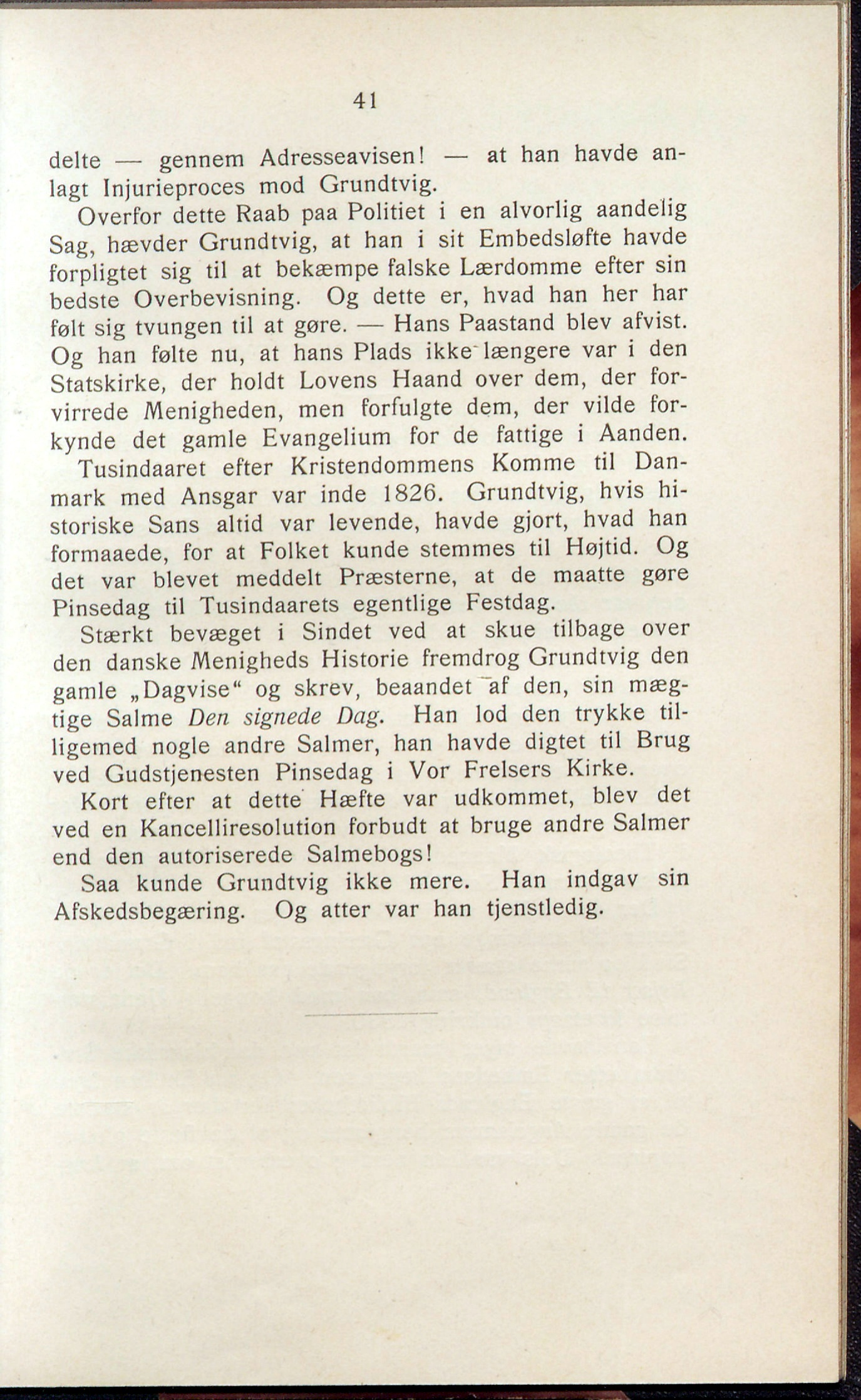 Saa kunde Grundtvig ikke mere. Han indgav sin