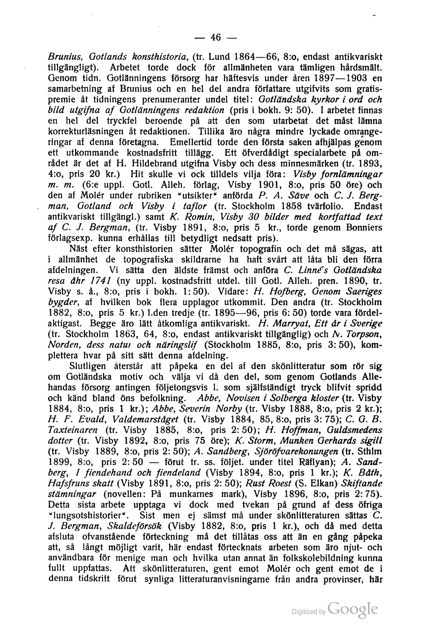 Visby s. å., 8:o, pris i bokh. 1:50). Vidare: H. Hofberg, Genom Saeriges