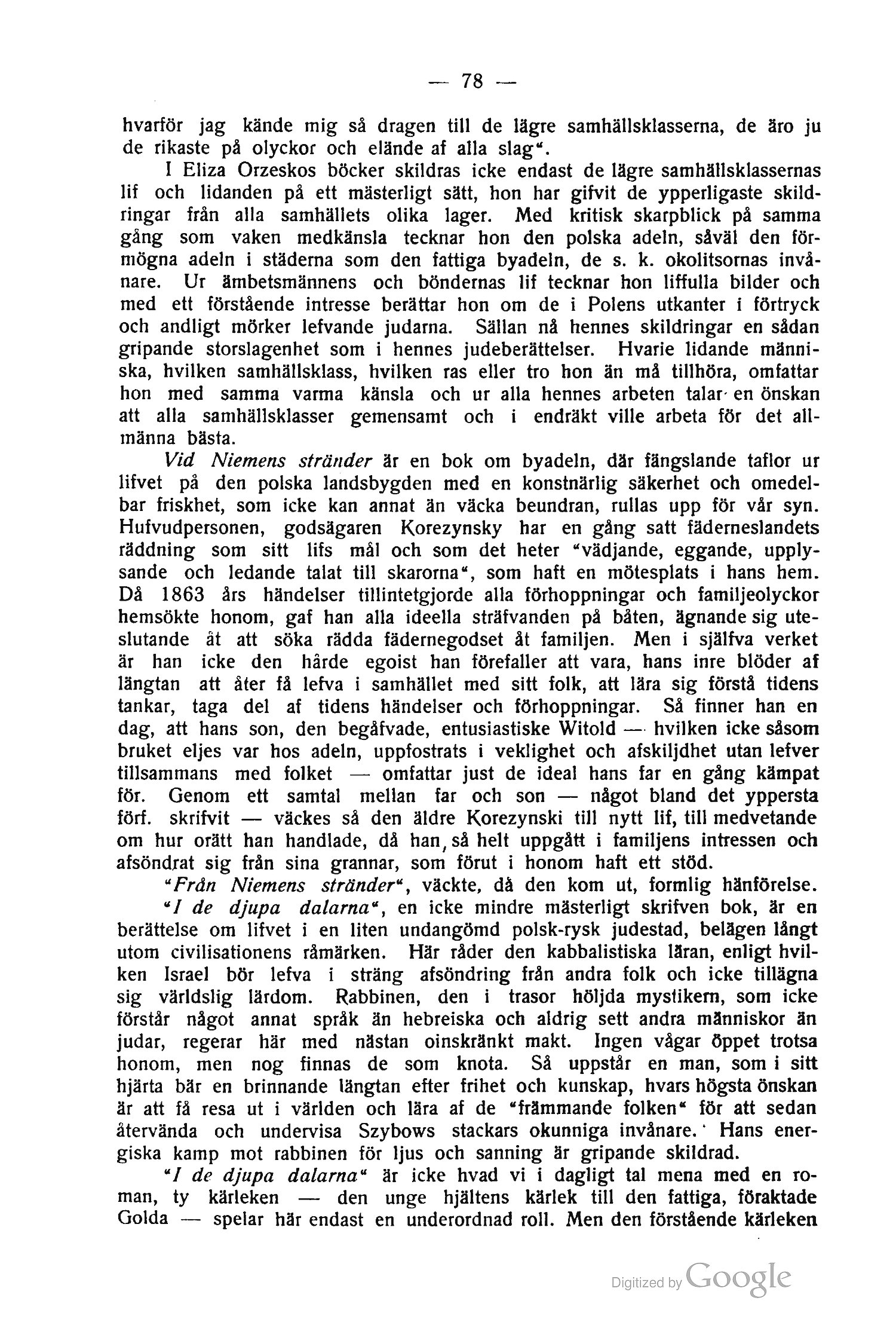 I Eliza Orzeskos böcker skildras icke endast de lägre samhällsklassernas