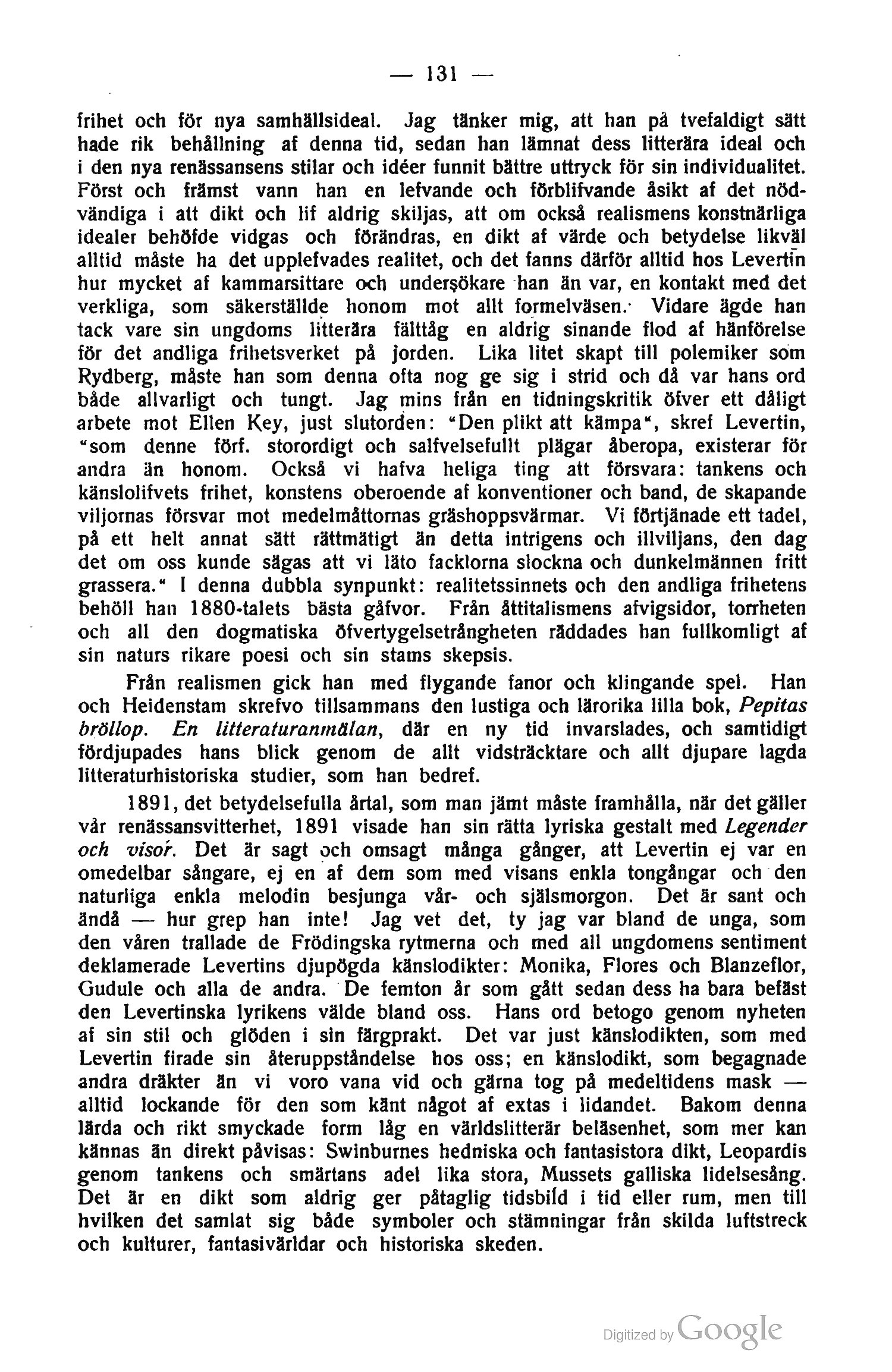 och visor. Det är sagt och omsagt många gånger, att Levertin ej var en