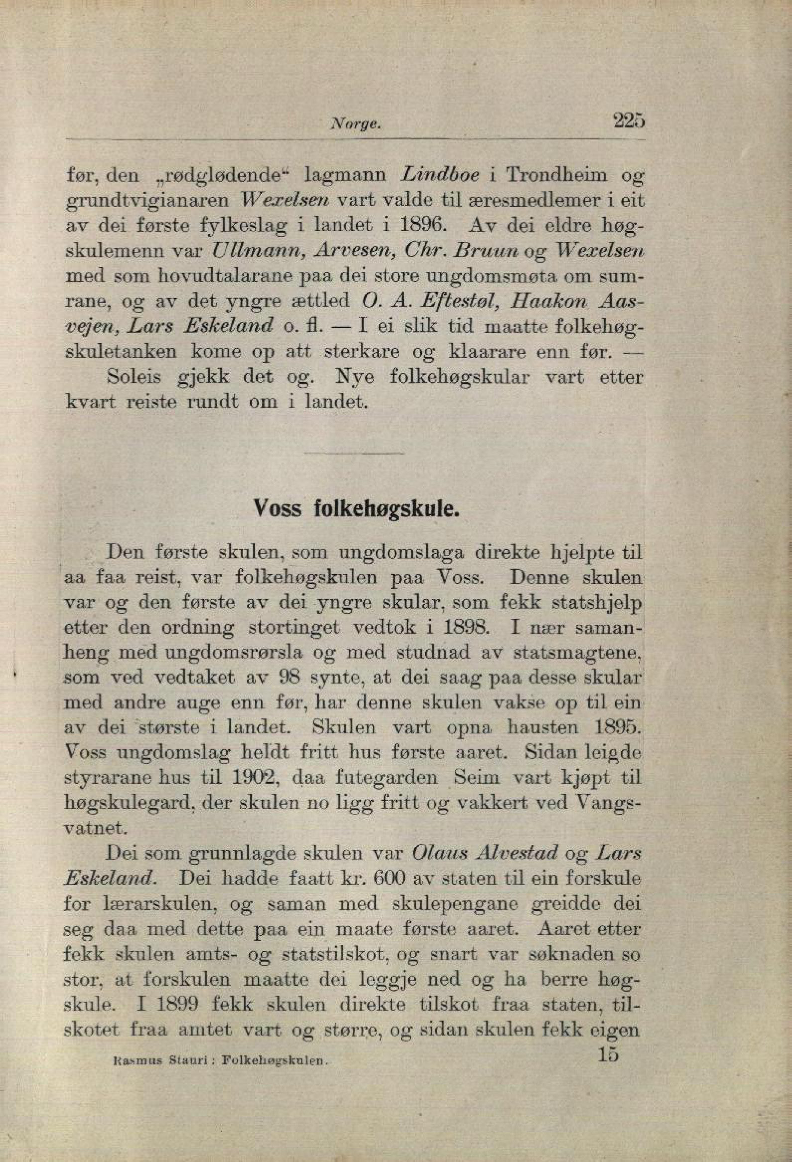 aa faa. reist, var folkehøgskulen paa Voss. Denne skulen