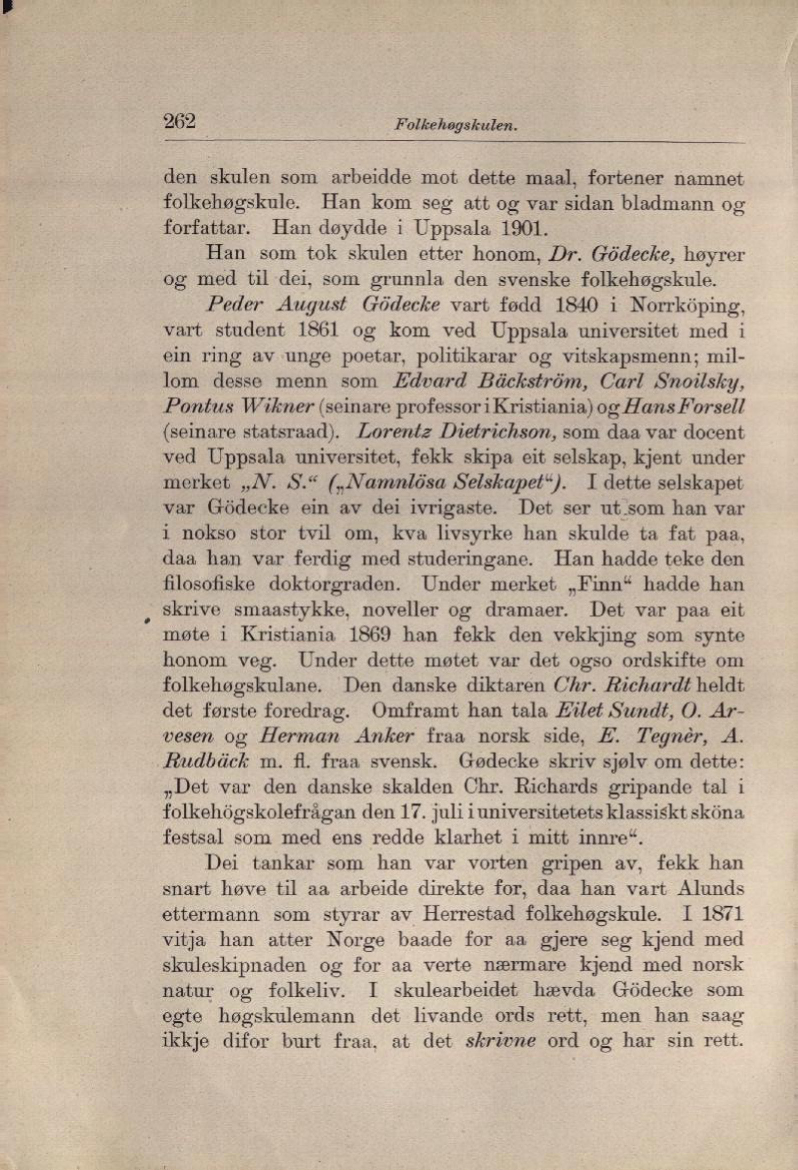 folkehøgskulane. Den danske diktaren Chr. Richardt heldt