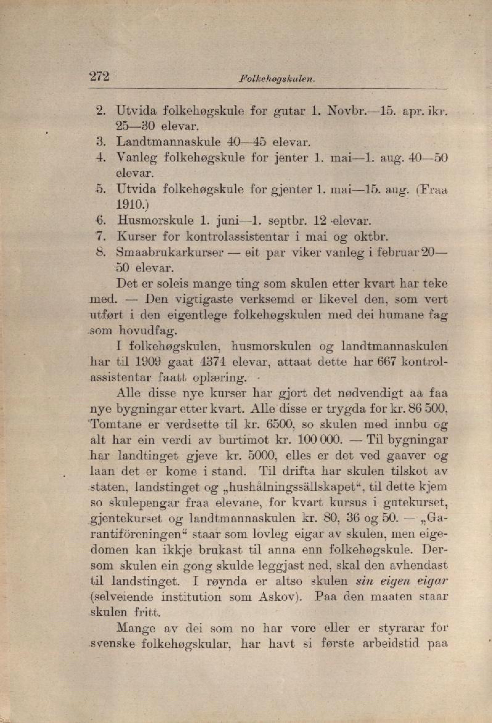 5. Utvida folkehøgskule for gjenter 1. mai—15. aug. Fraa