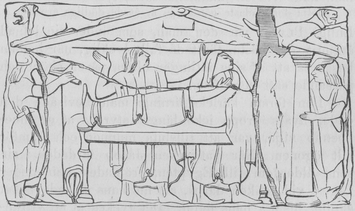 sig håret. Tärnorna, tagna i kriget, omgåfvo honom