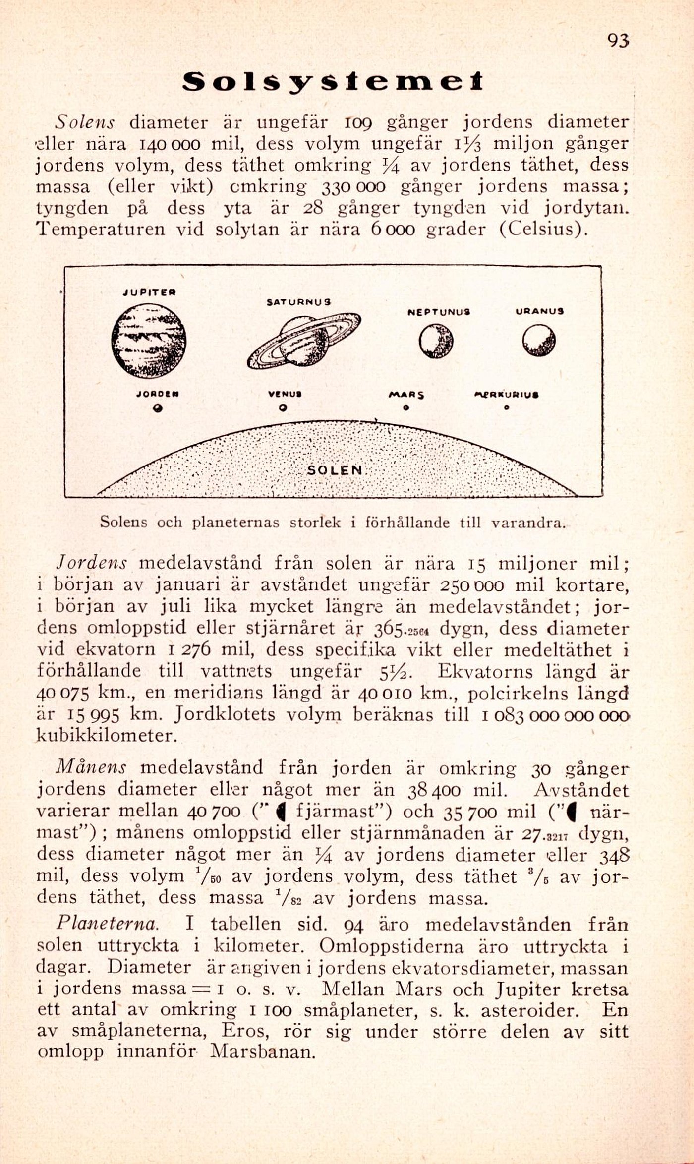 Planeterna. I tabellen sid. 94 äro medelavstånden från