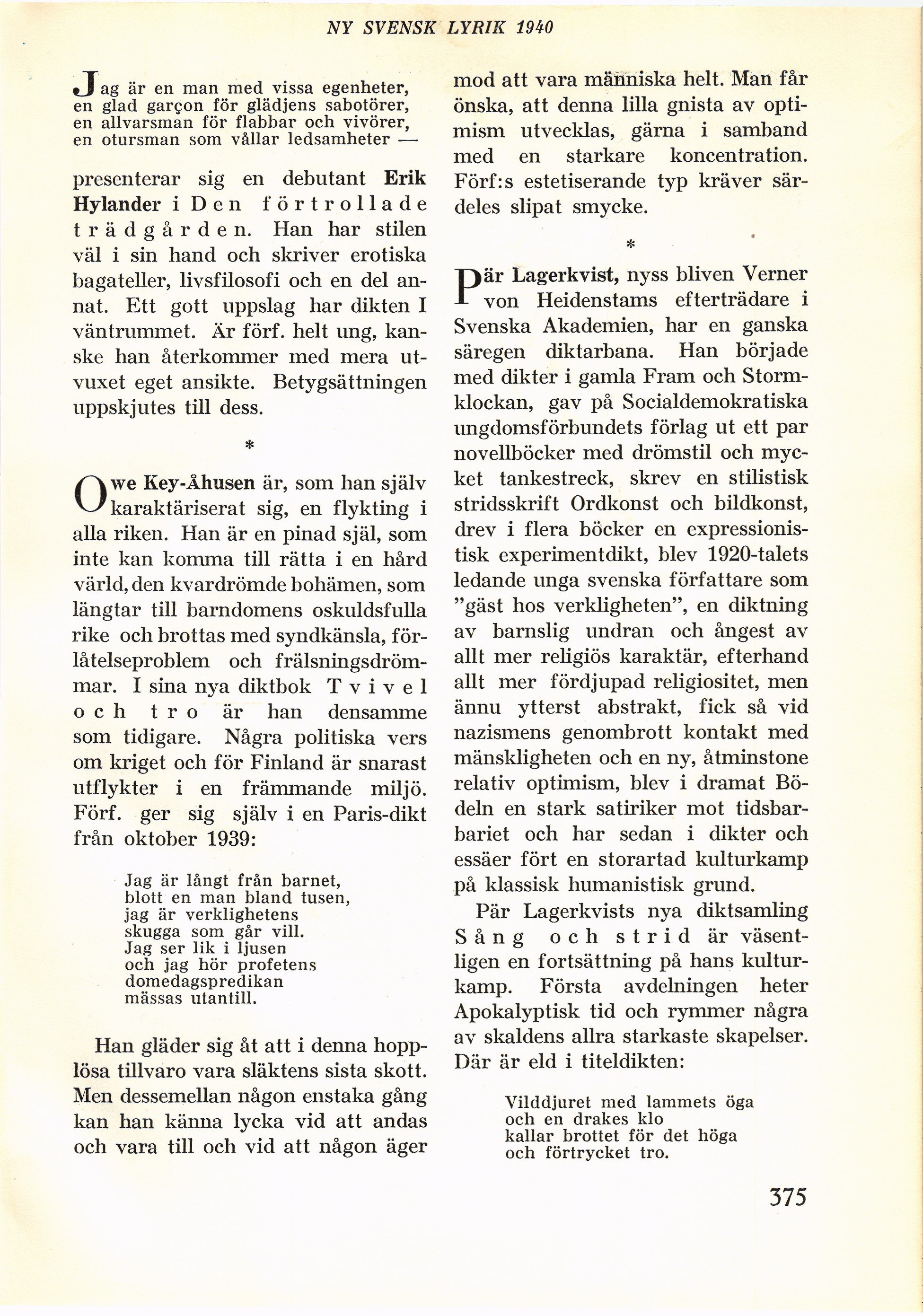 annat. Ett gott uppslag har dikten I