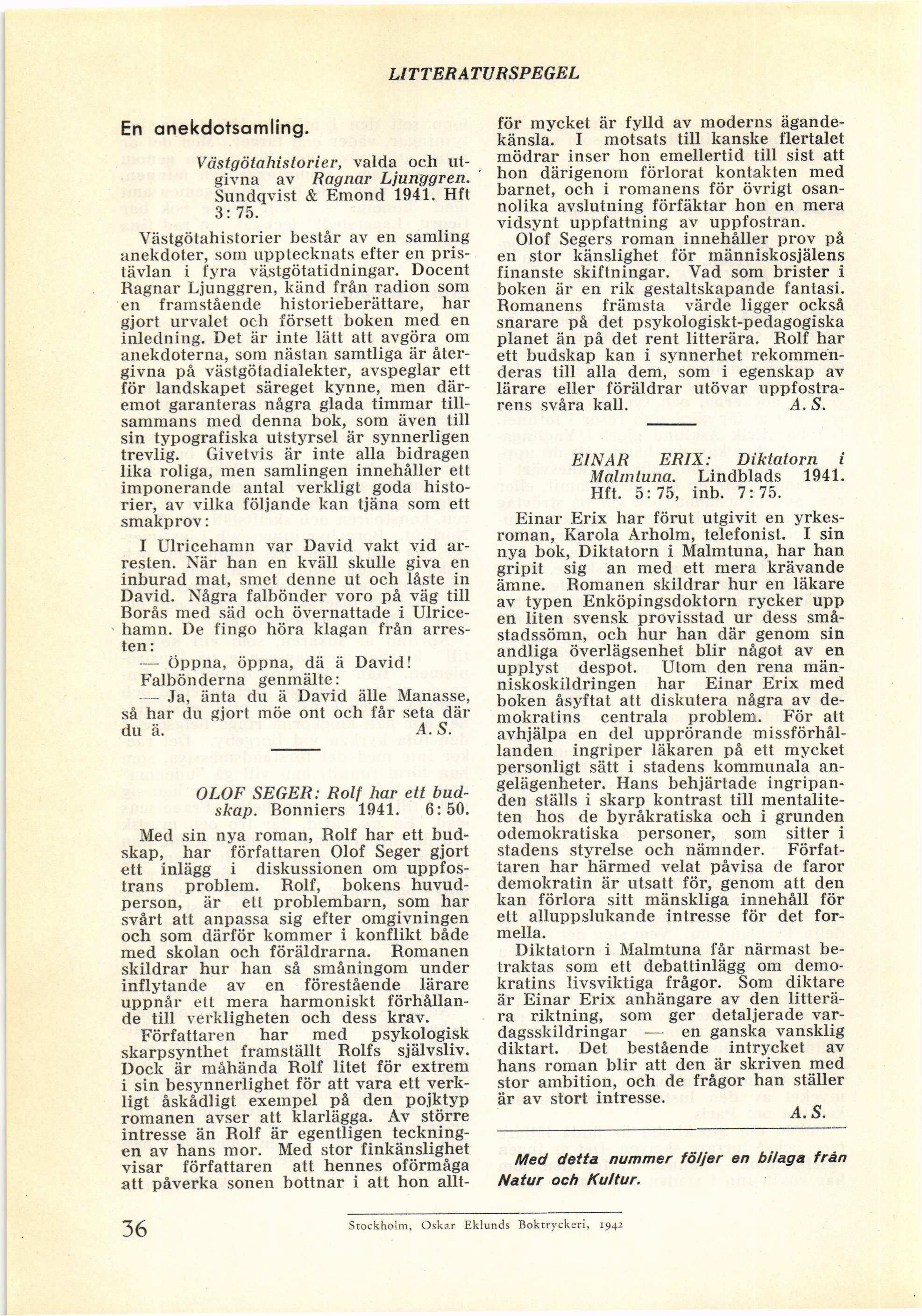 Stockholm, Oskar Eklunds Boktryckeri, 1942