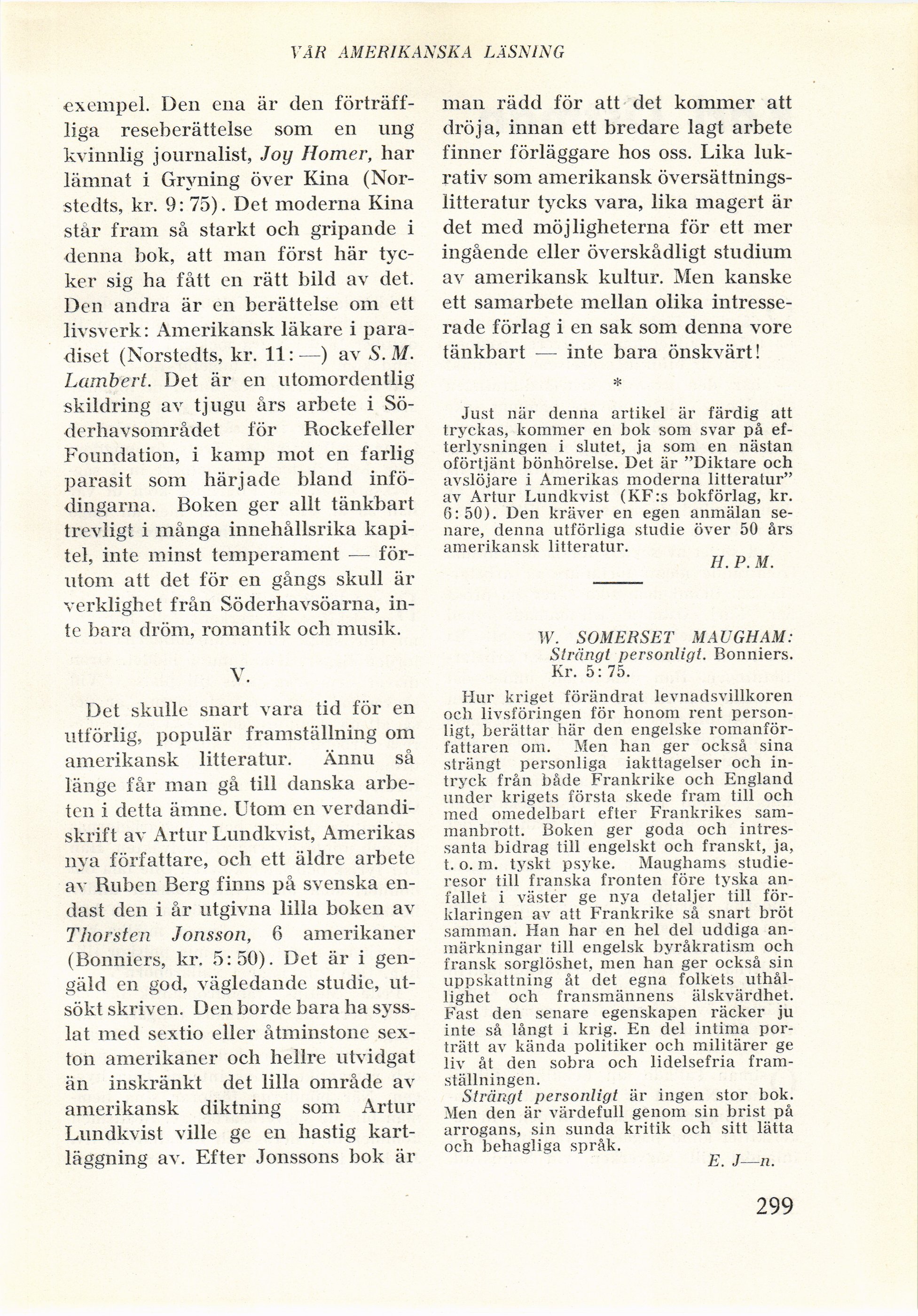 verdandi-skrift av Artur Lundkvist, Amerikas