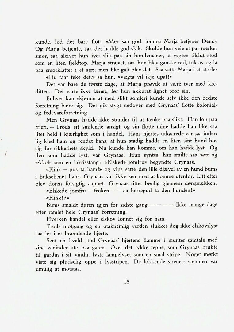 kunde, lød det bare flot: «Vær saa god, jomfru Marja betjener Dem.»